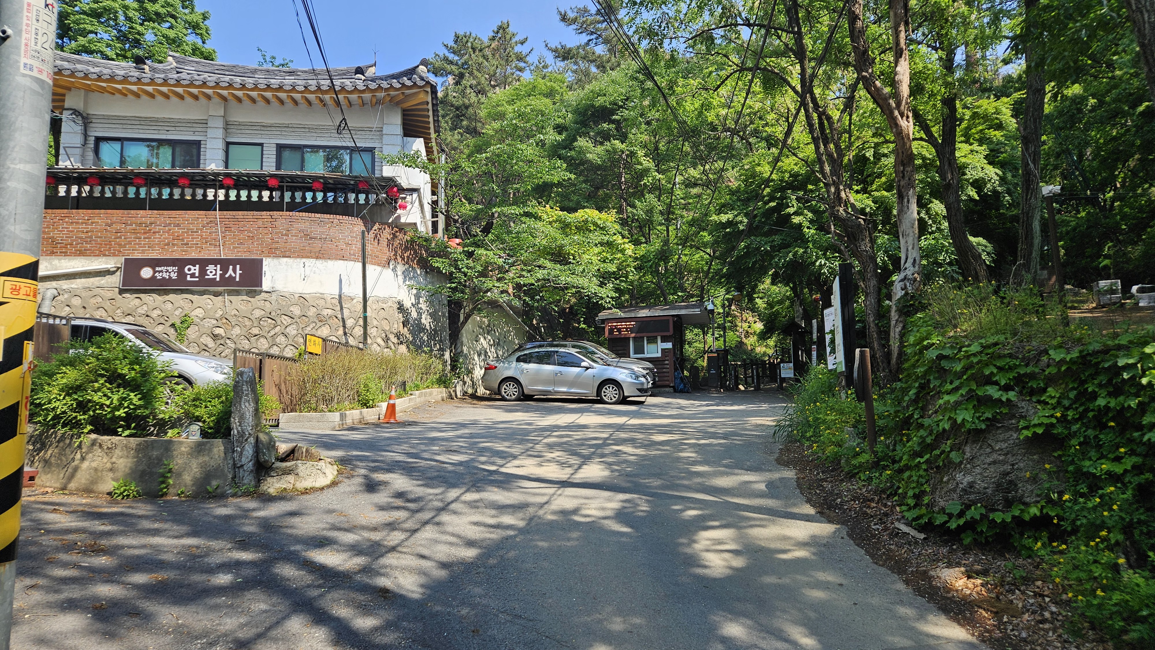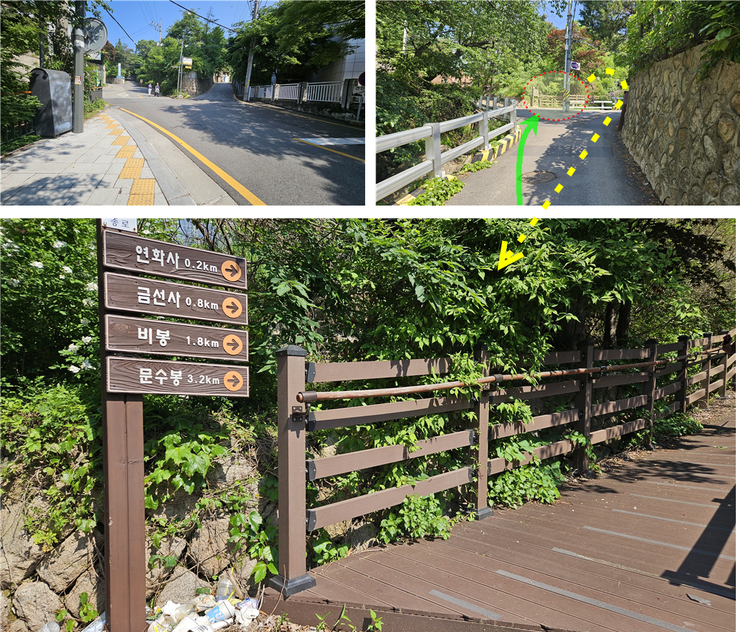 왼쪽에는 연화사가 나타난다. 앞에는 비봉탐방지원센터가 있다.
