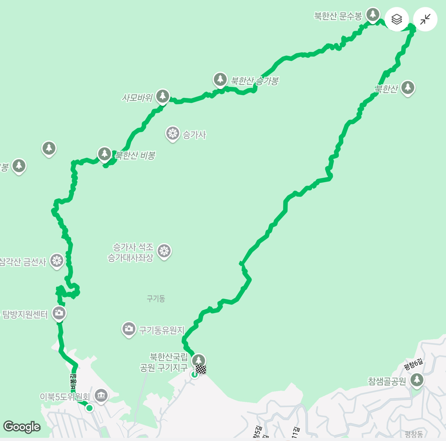 오늘 사용한 삼성헬스앱에 있는 구글지도다. 산행경로를 참고했다.