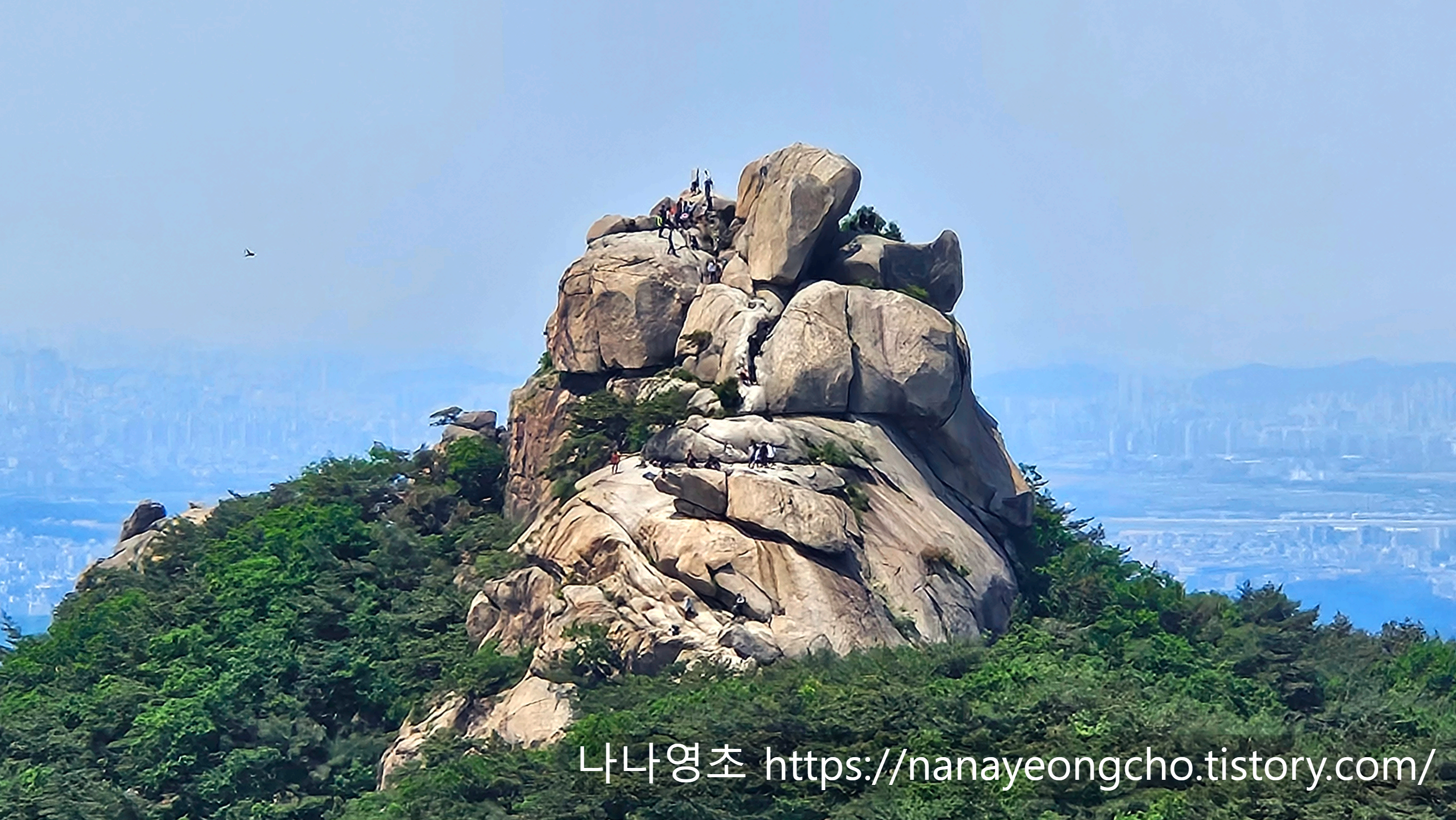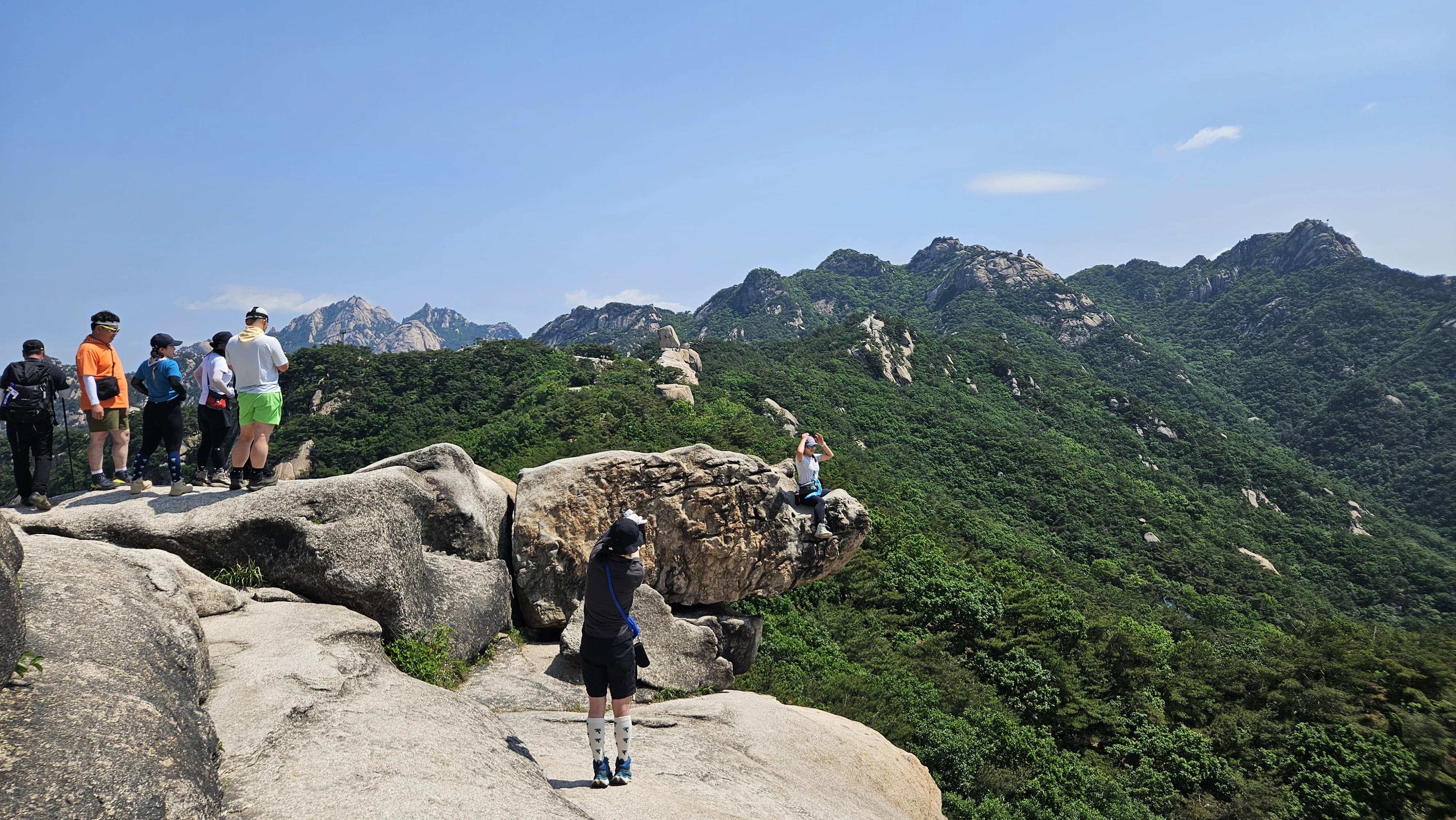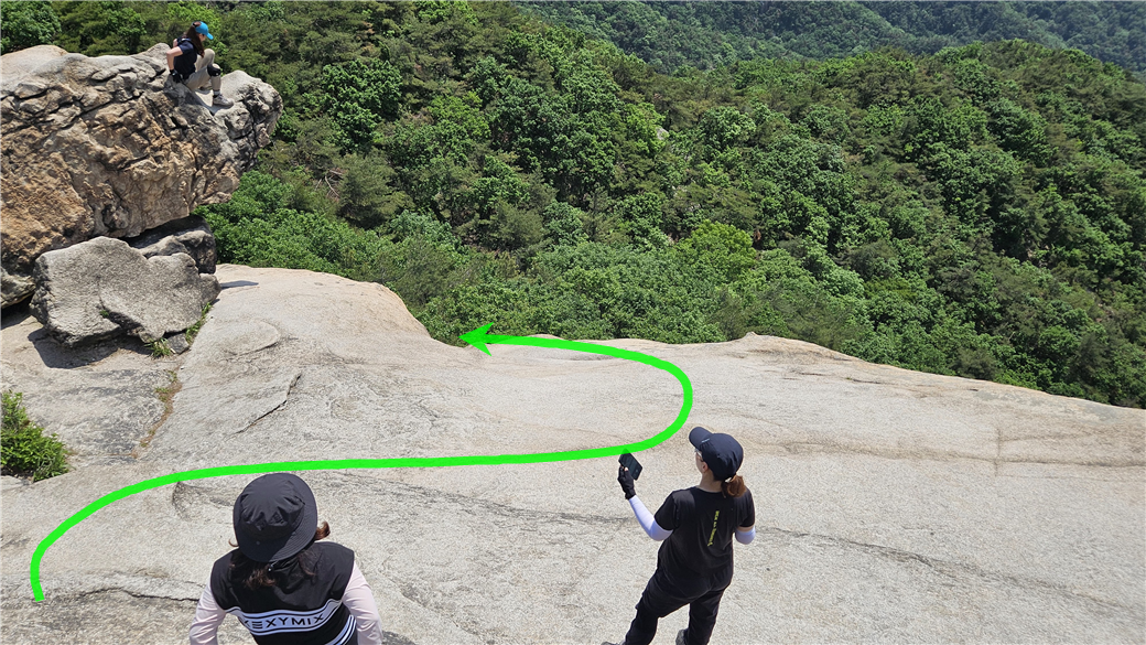 비봉의 명소인 코뿔소바위에 누군가 앉는다. 그리고 사진을 찍는다. 보기만 해도 나나영초의 다리가 후들 거린다.