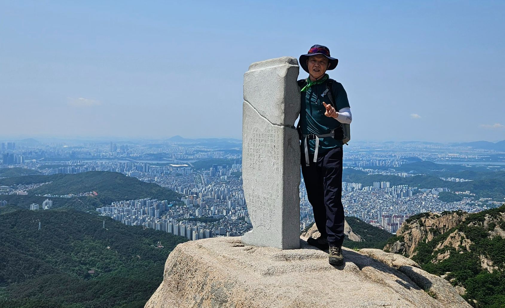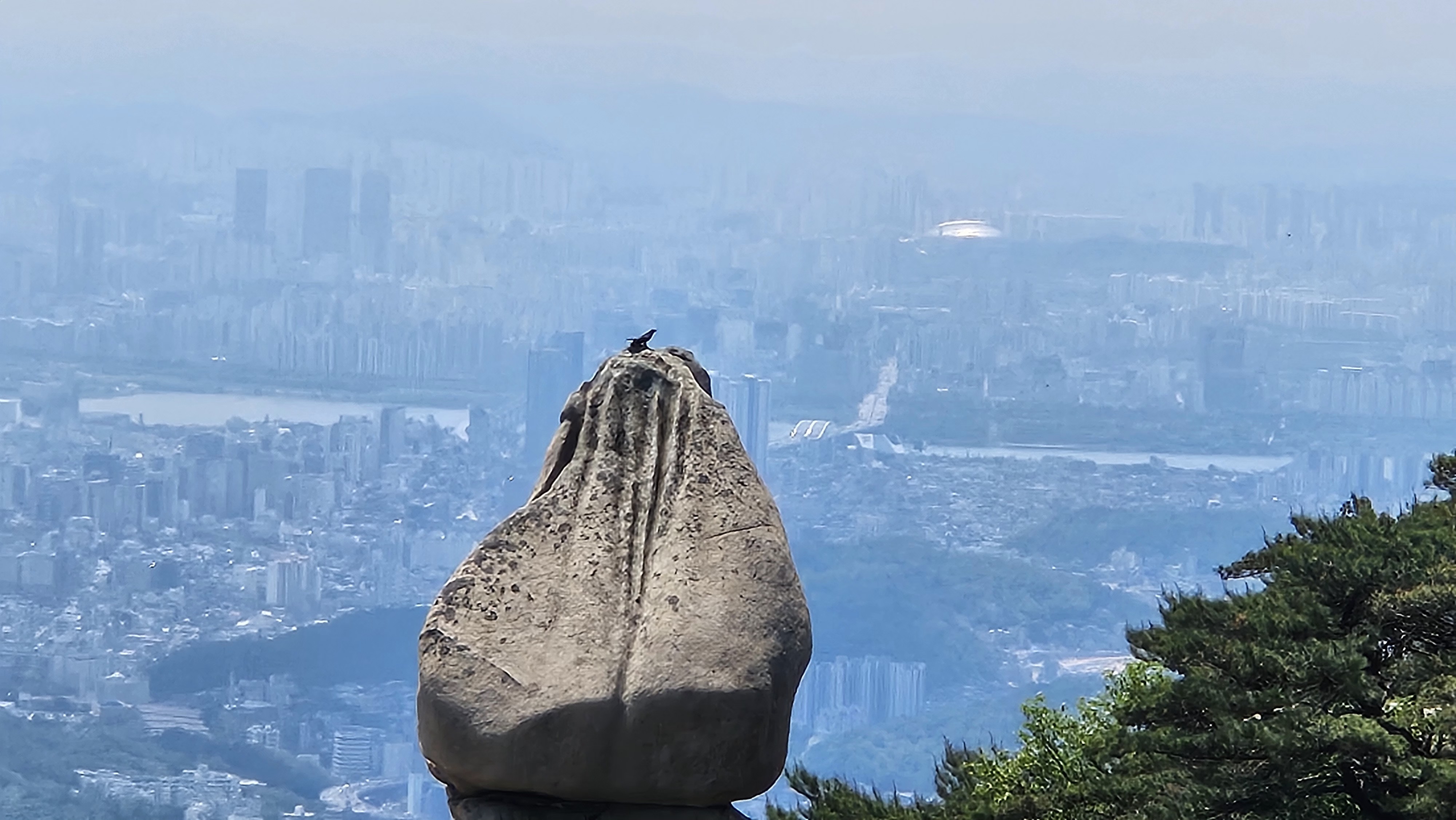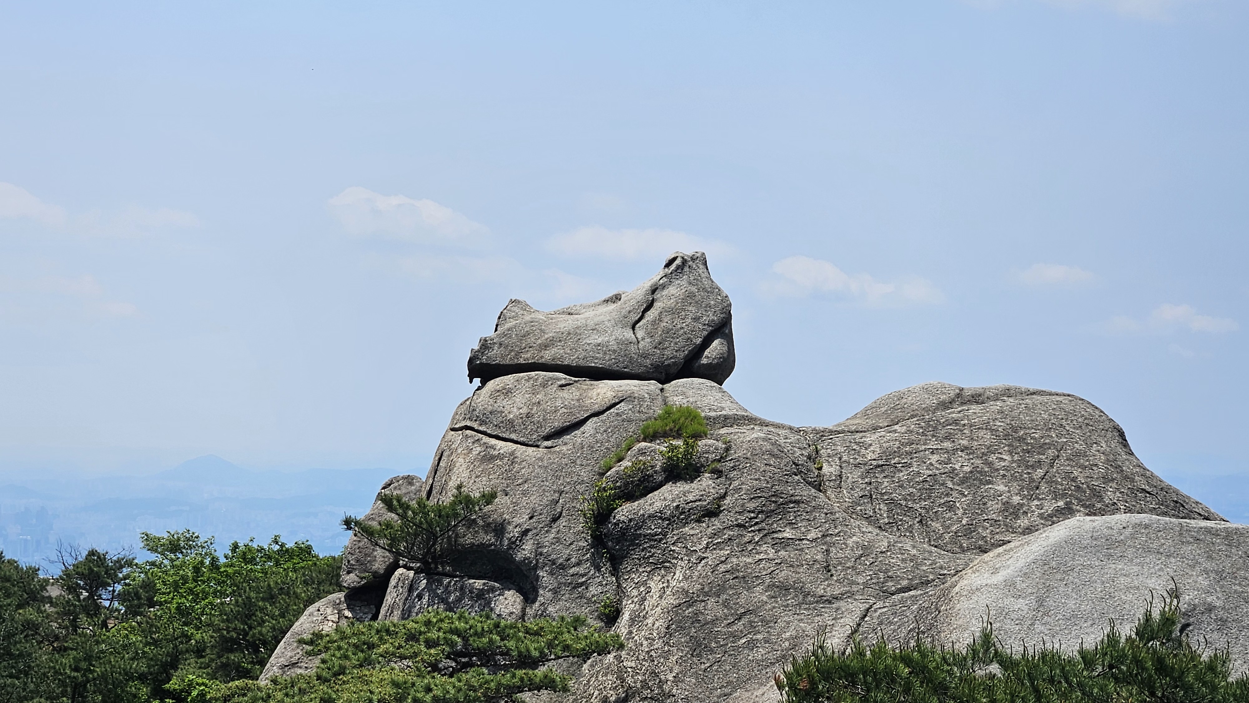 비봉의 명소인 코뿔소바위에 누군가 앉는다. 그리고 사진을 찍는다. 보기만 해도 나나영초의 다리가 후들 거린다.