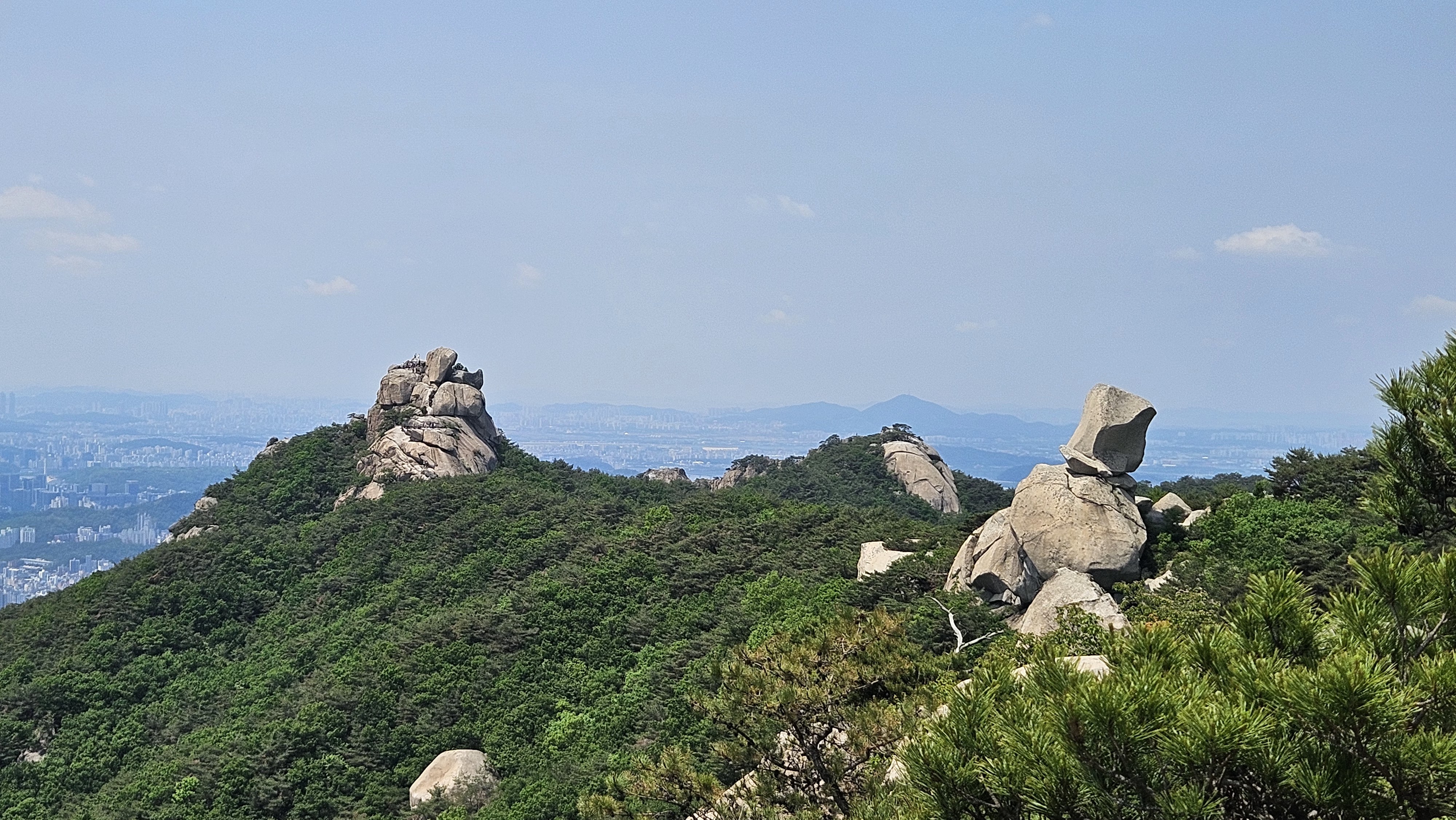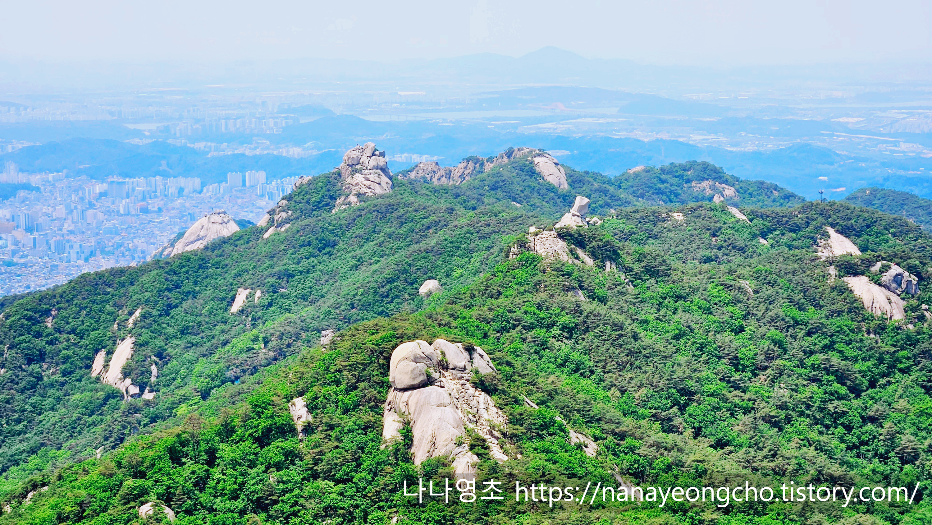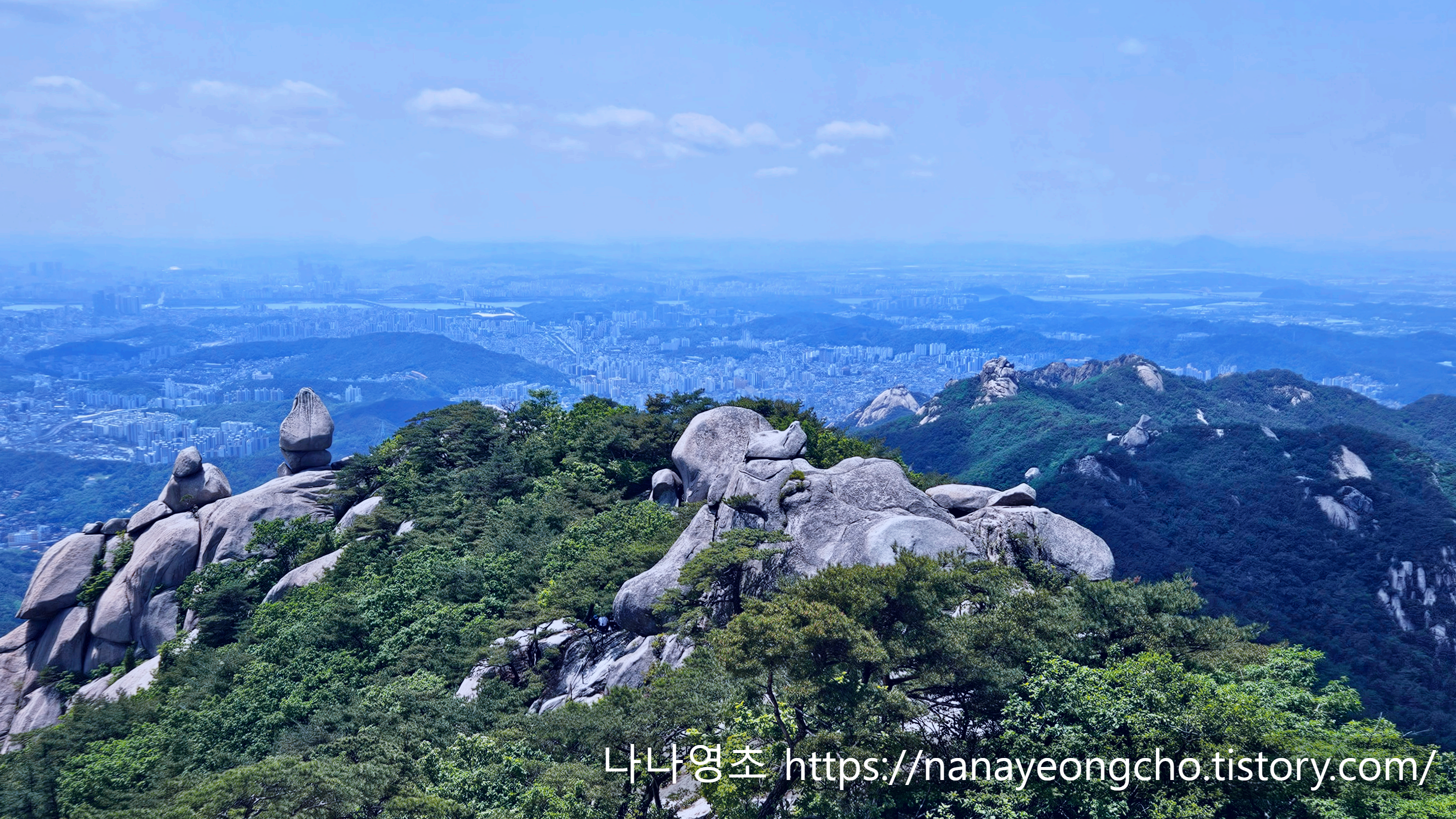 비봉에서 서울 시내 방향을 바라본다. 멀리 롯데타워가 보인다. 안보이나? 나나영초 눈에는 보이는데...