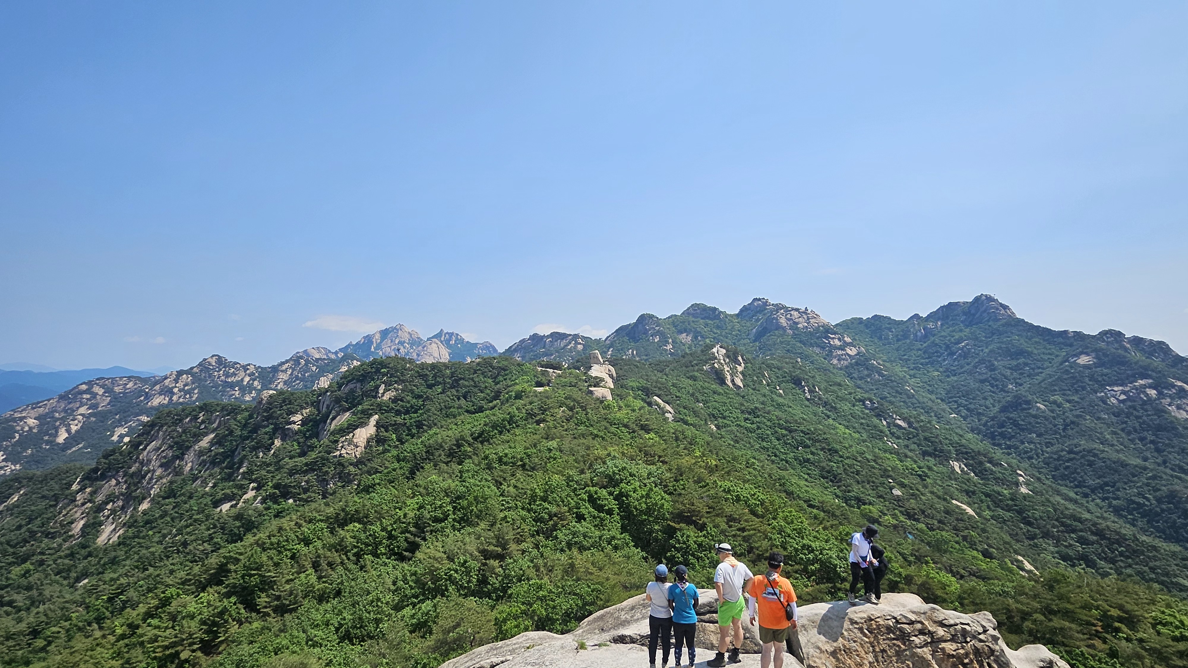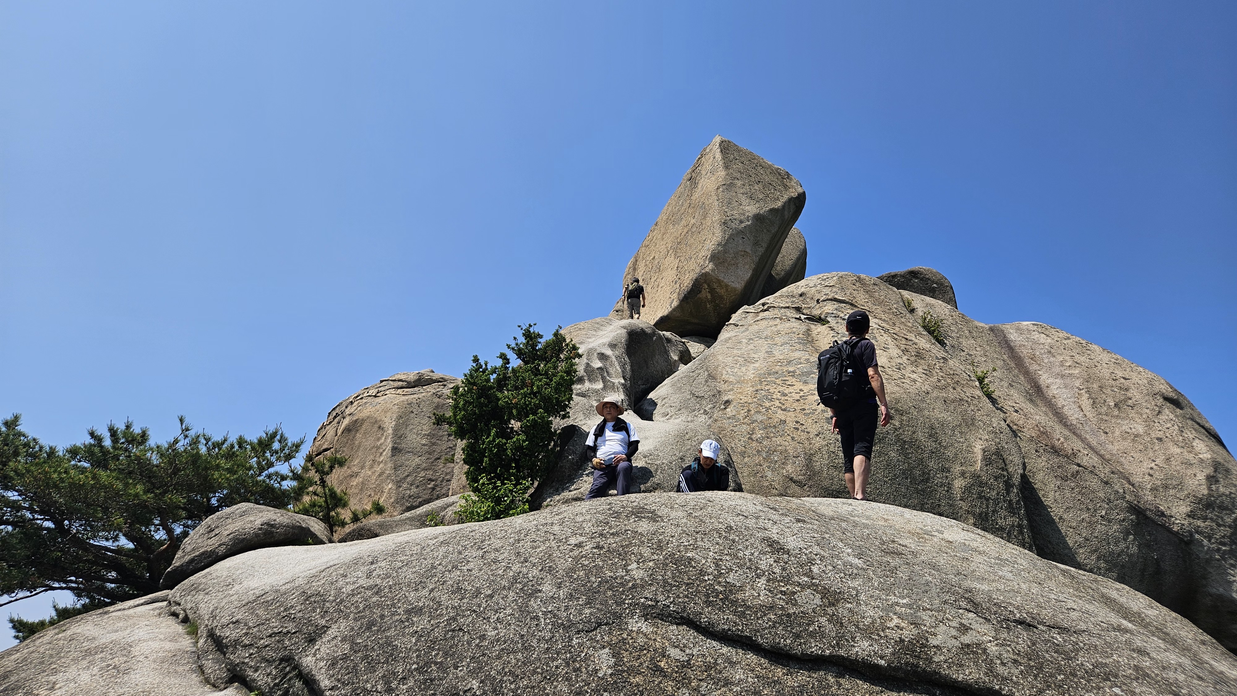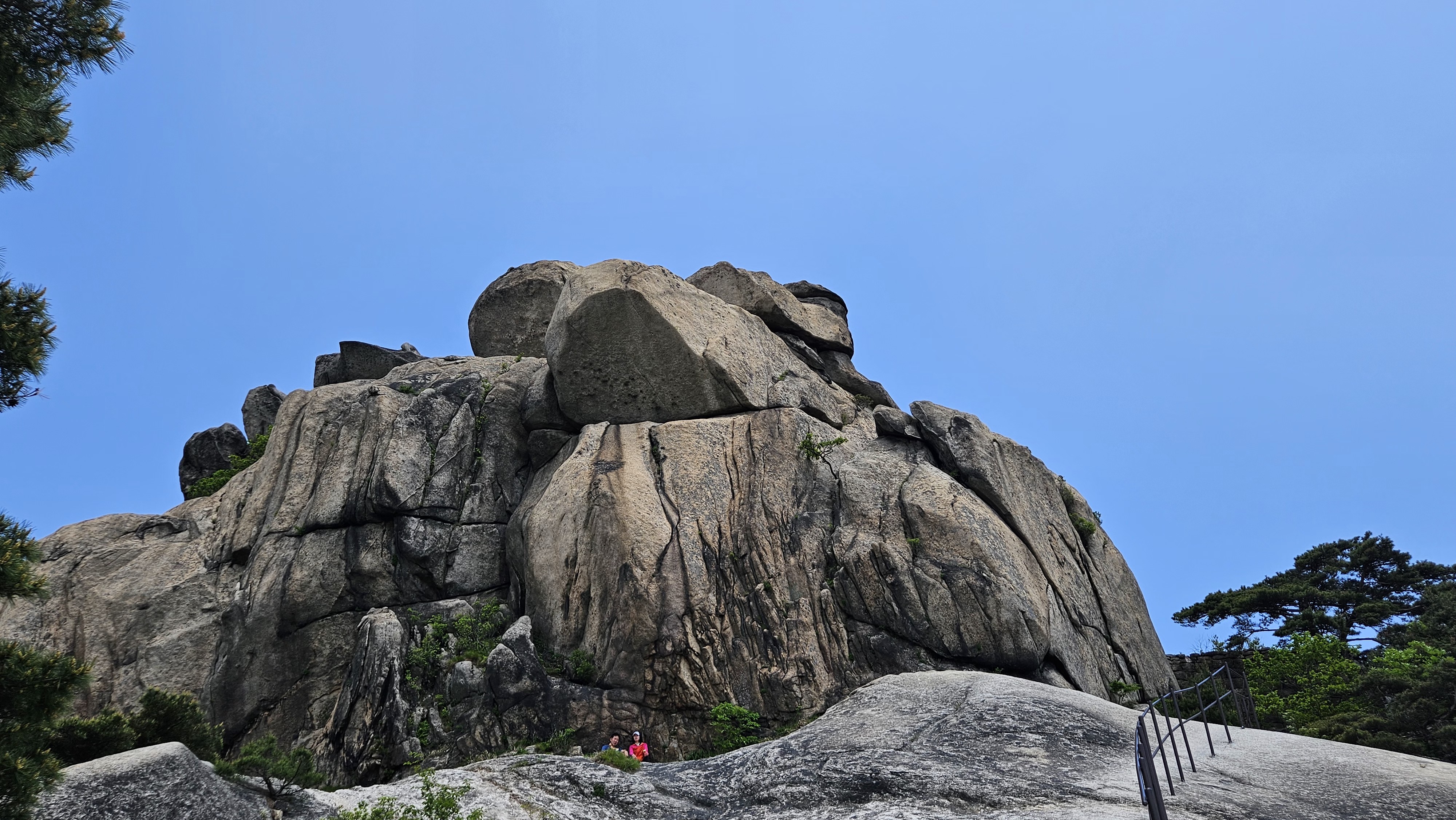 이 곳이 실제 가장 높은 문수봉이다. 우리가 가는 바위는 가장 높은 곳이 아니다. 바위 아래 어느 커플이 앉아 쉬고 있다.