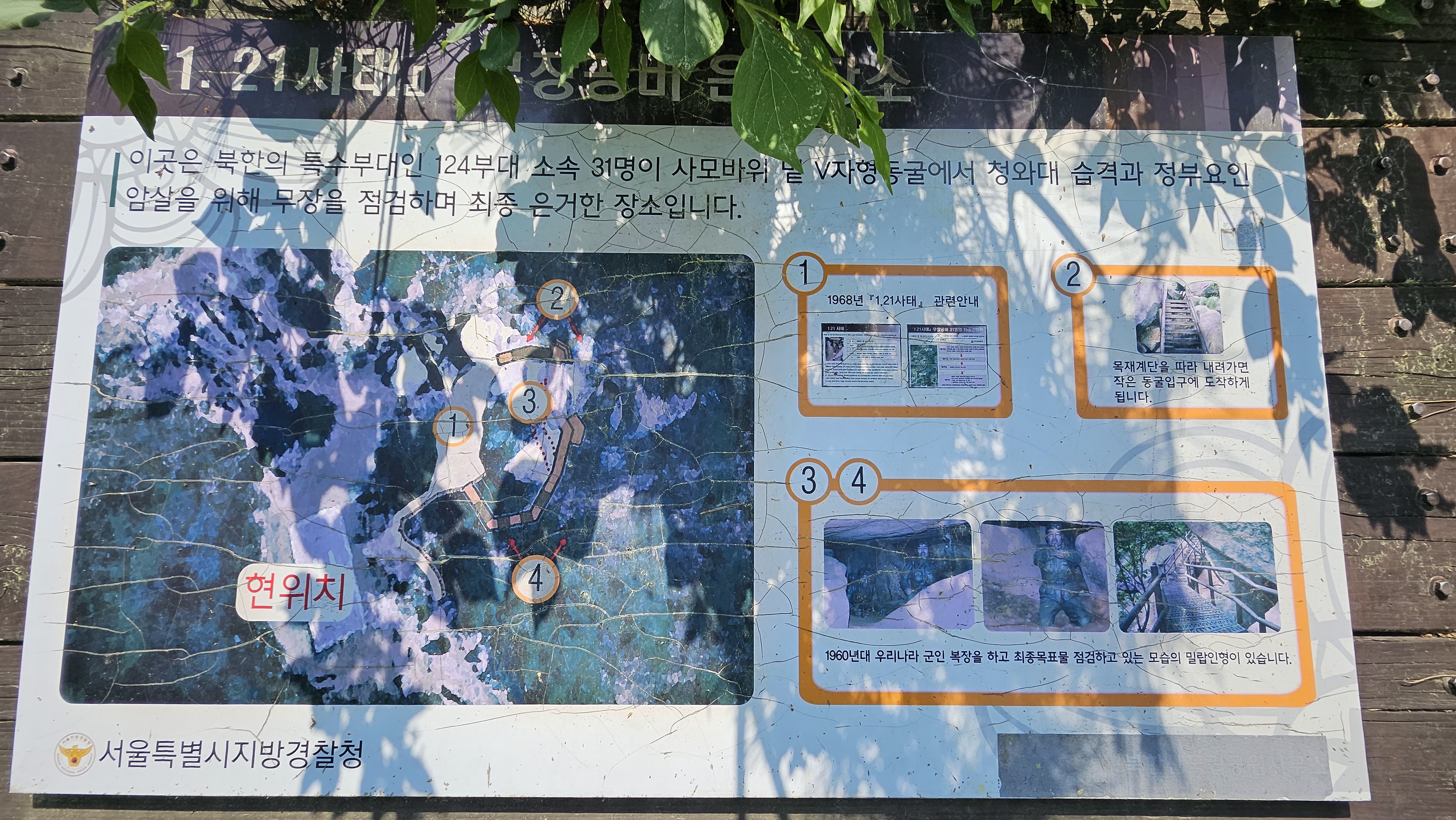 사모바위 도착 전 1.21사태 때 무장공비가 숨어있던 굴에 대한 안내다. 시간이 있다면 들러보는 것도 괜찮다. 나나영초는 패스...
