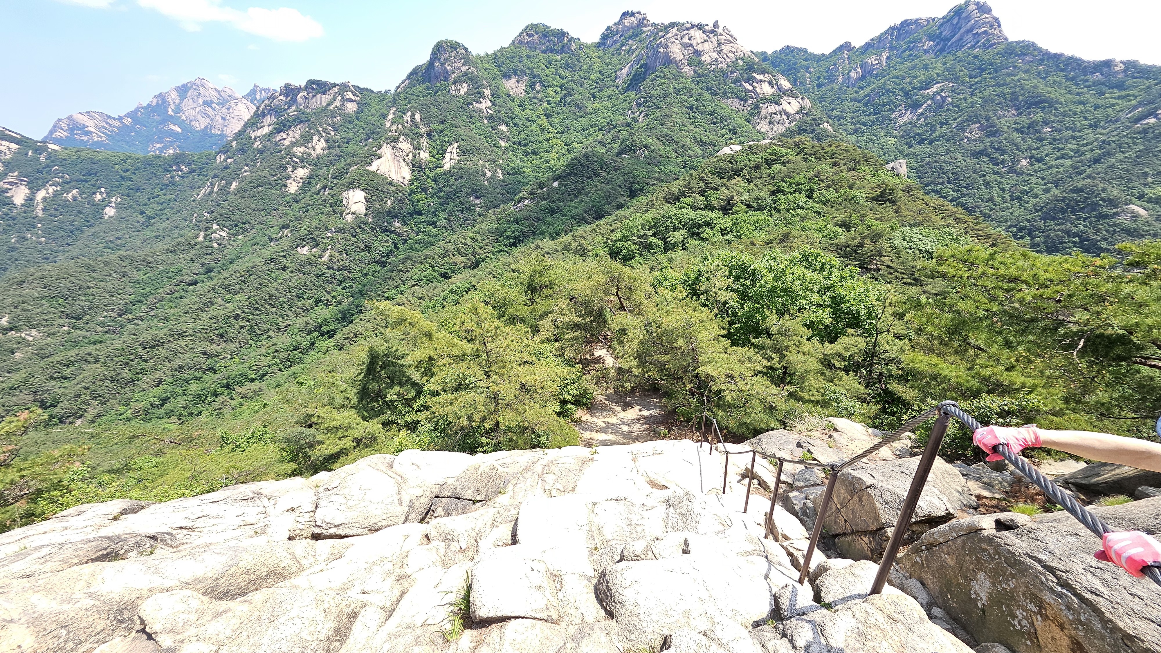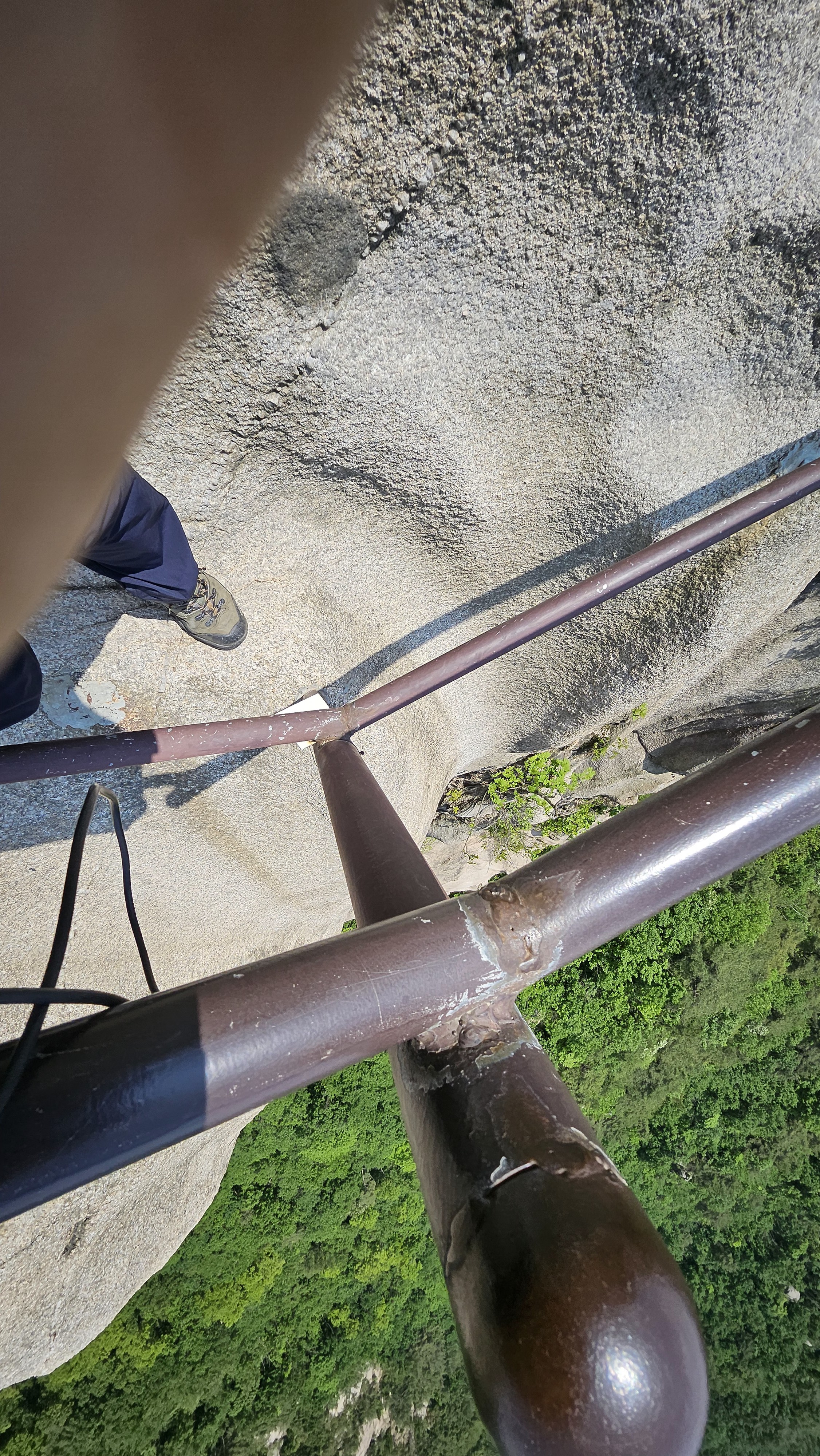 바위에 박힌 안전쇠바의 길이 나온다. 쇠바만 잘 잡고 가면 무섭지만 안전하다.