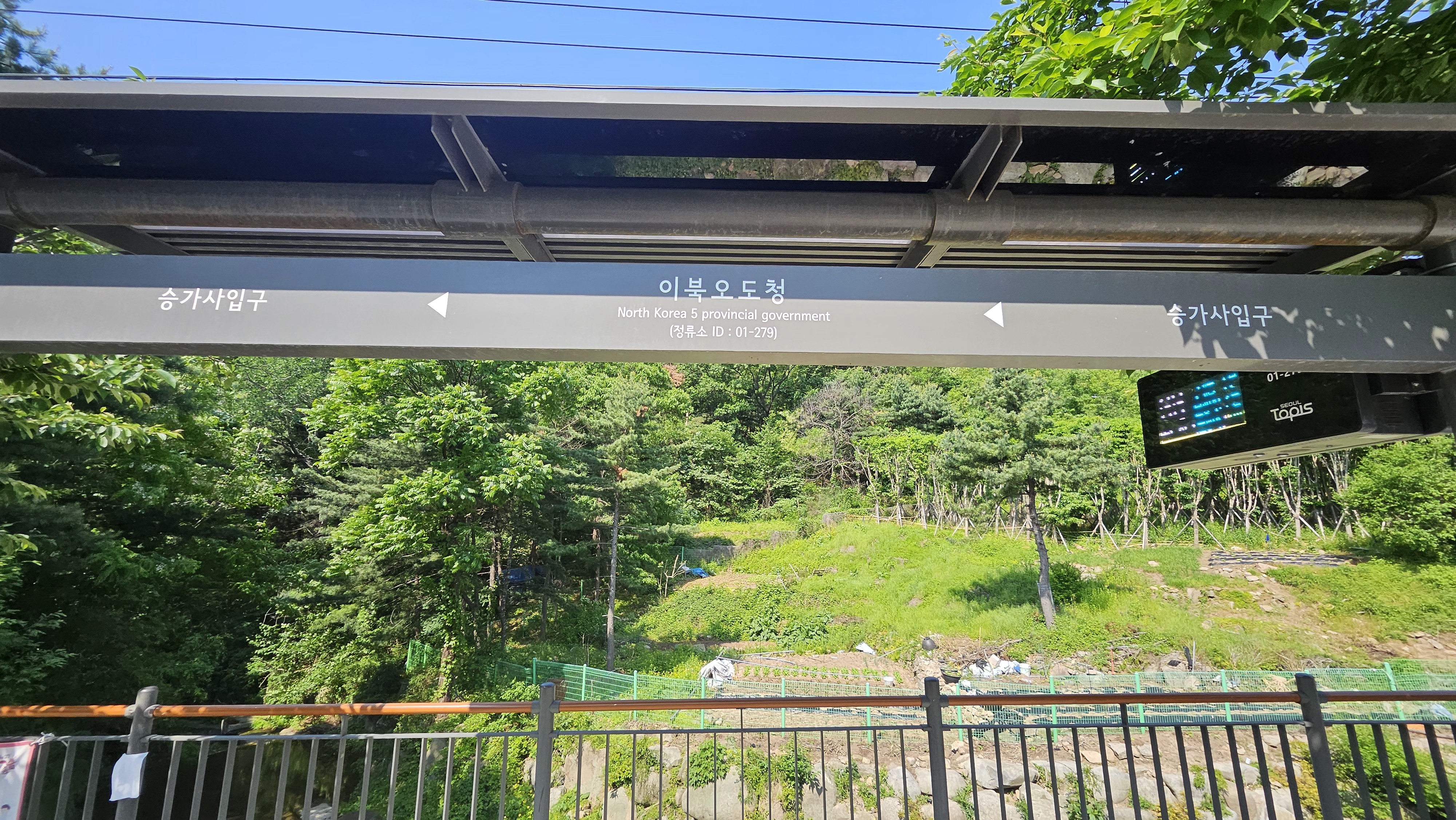 이북오도청에서 내려 길따라 올라간다.