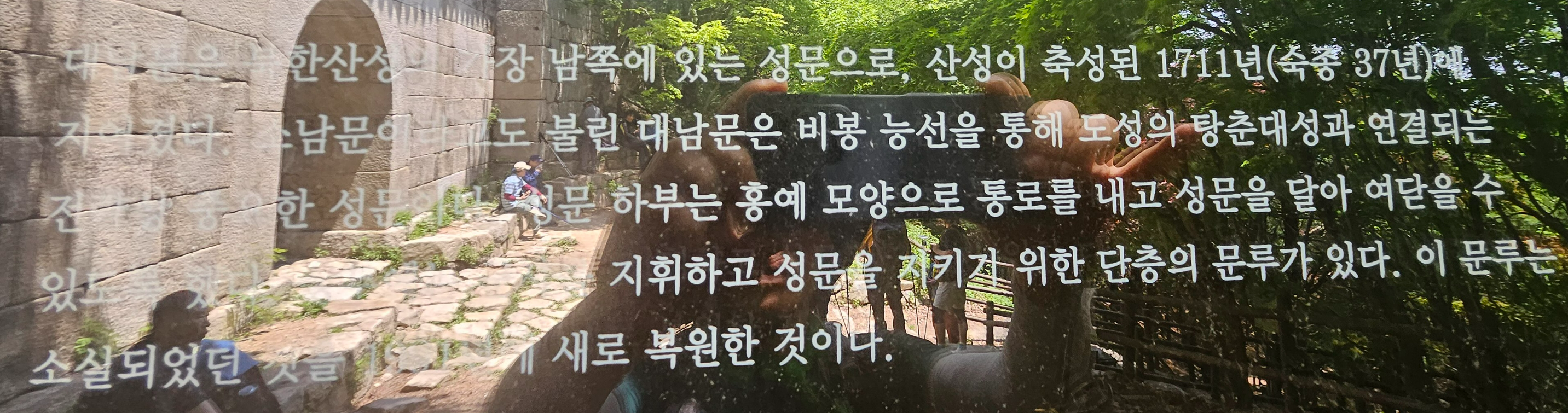 통과하니 대남문에 대한 설명이 있다. 잘 안보이지만 집중과 추측을 하면 대충 알 수 있다.