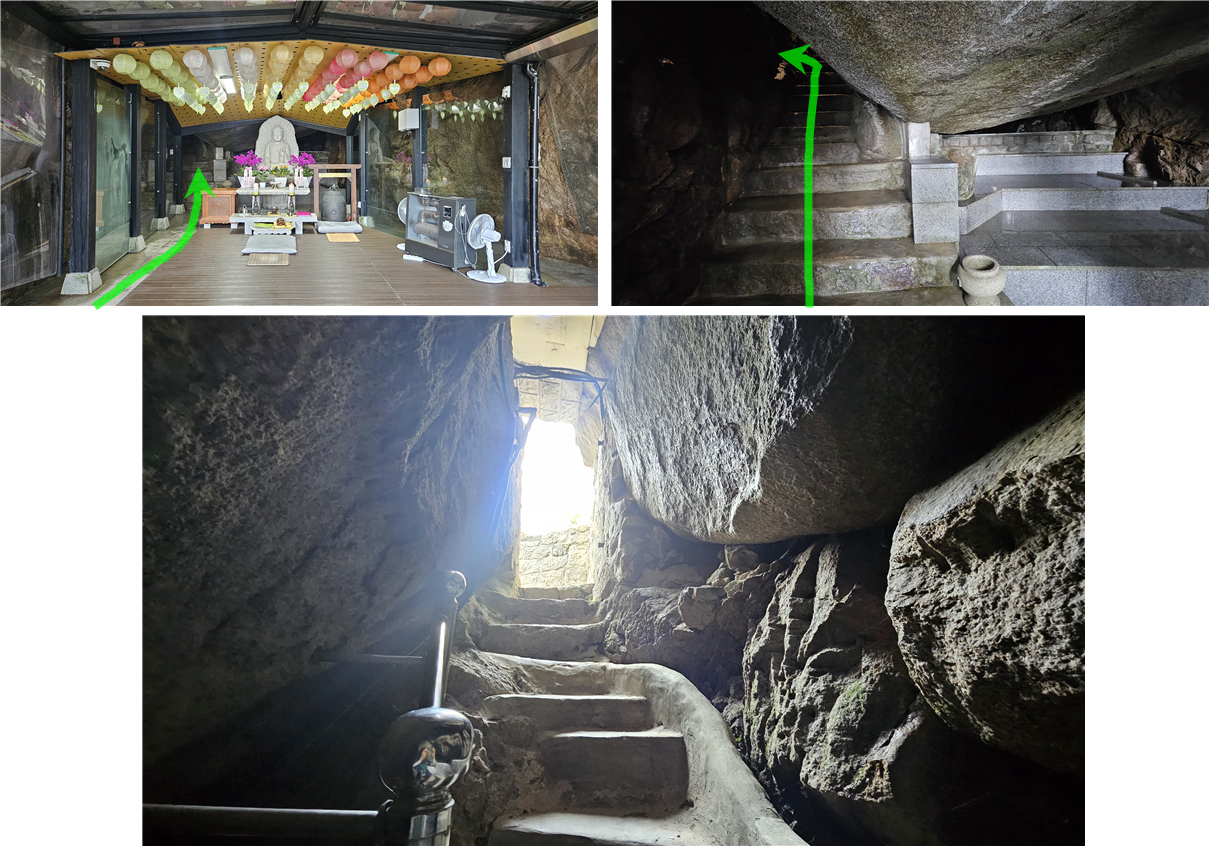 동굴(목정굴)에 사진처럼 문이 있다. 앞에 가서 문을 밀고 들어간다.