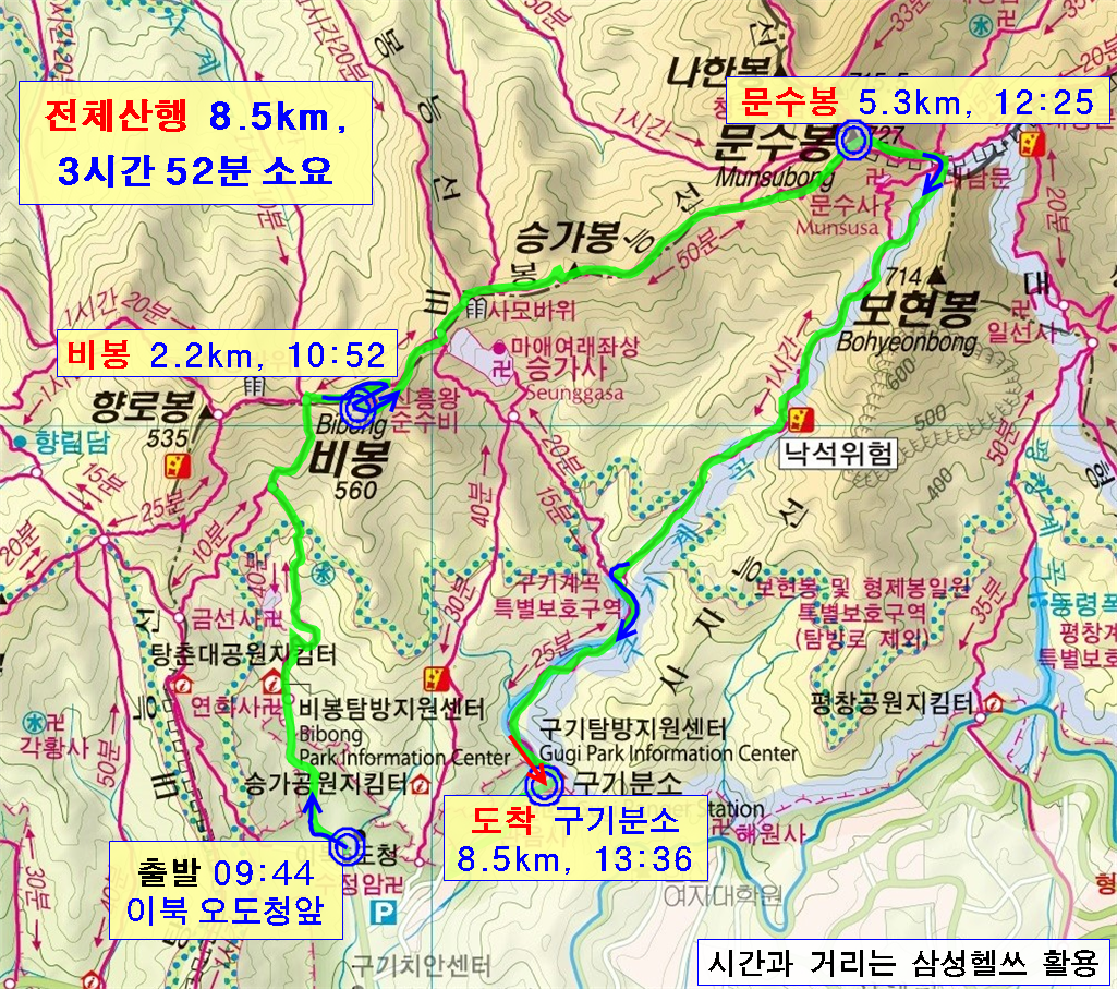 *** 산행코스 : 이북오도청 - 금산사(00굴) - 비봉 - 사모바위 - 승가봉 - 문수봉 - 구기분소