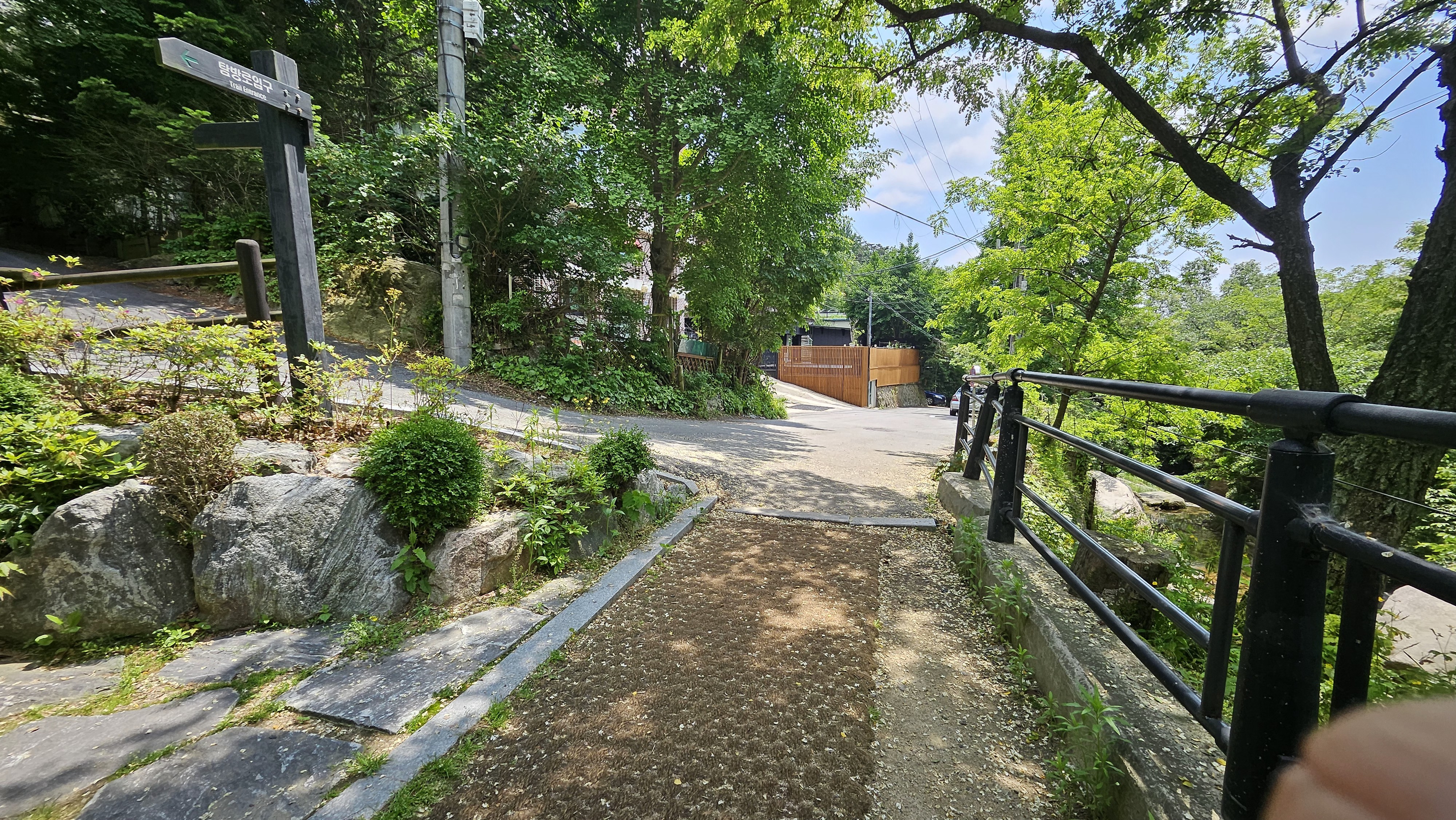 볕이 있는 날씨이나 계곡 등산길은 나무그늘로 그림자가 있어 시원함이 느껴진다. 거기에 공기마저 시원하니 등산하기 완전 좋은 그런 날이다.
