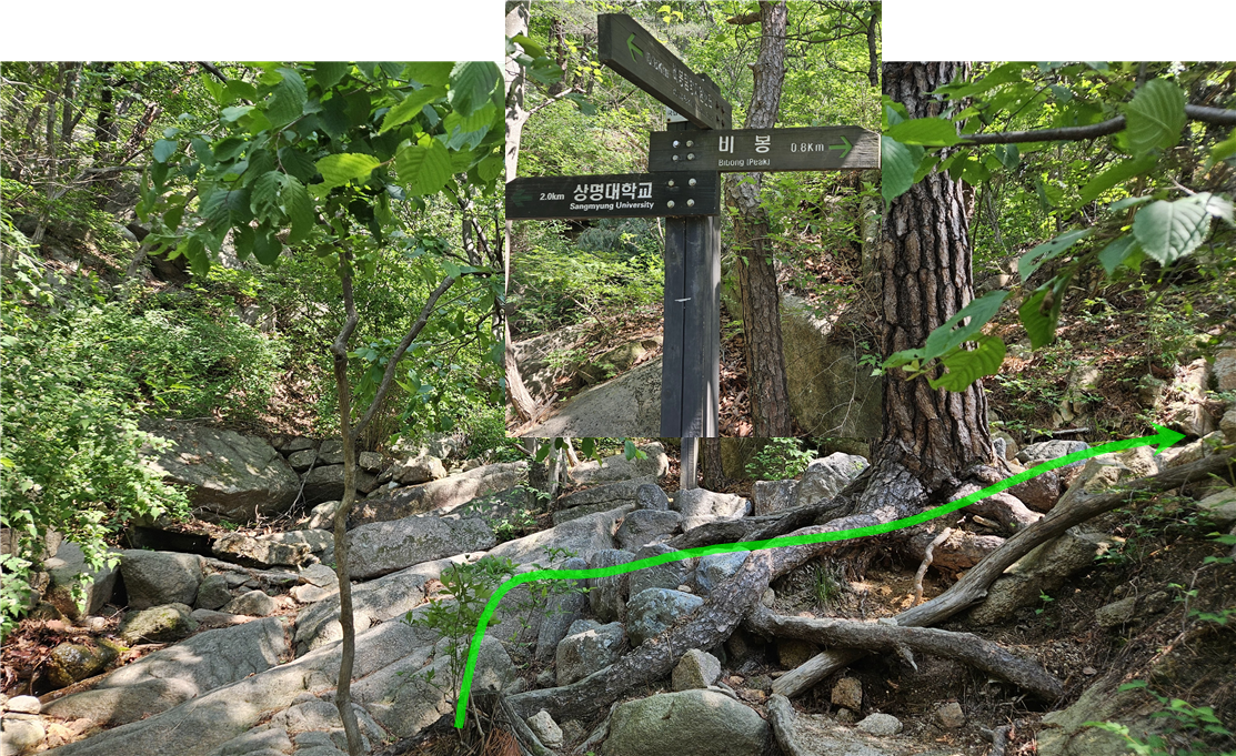 이 곳은 오르고 내려오는 길이 두 곳이다. 왼쪽 실선 길은 조금 무섭다. 왼쪽이 절벽이다. 그래서 쫄보 나나영초는 오른쪽 점선 길을 택해 올라간다..
