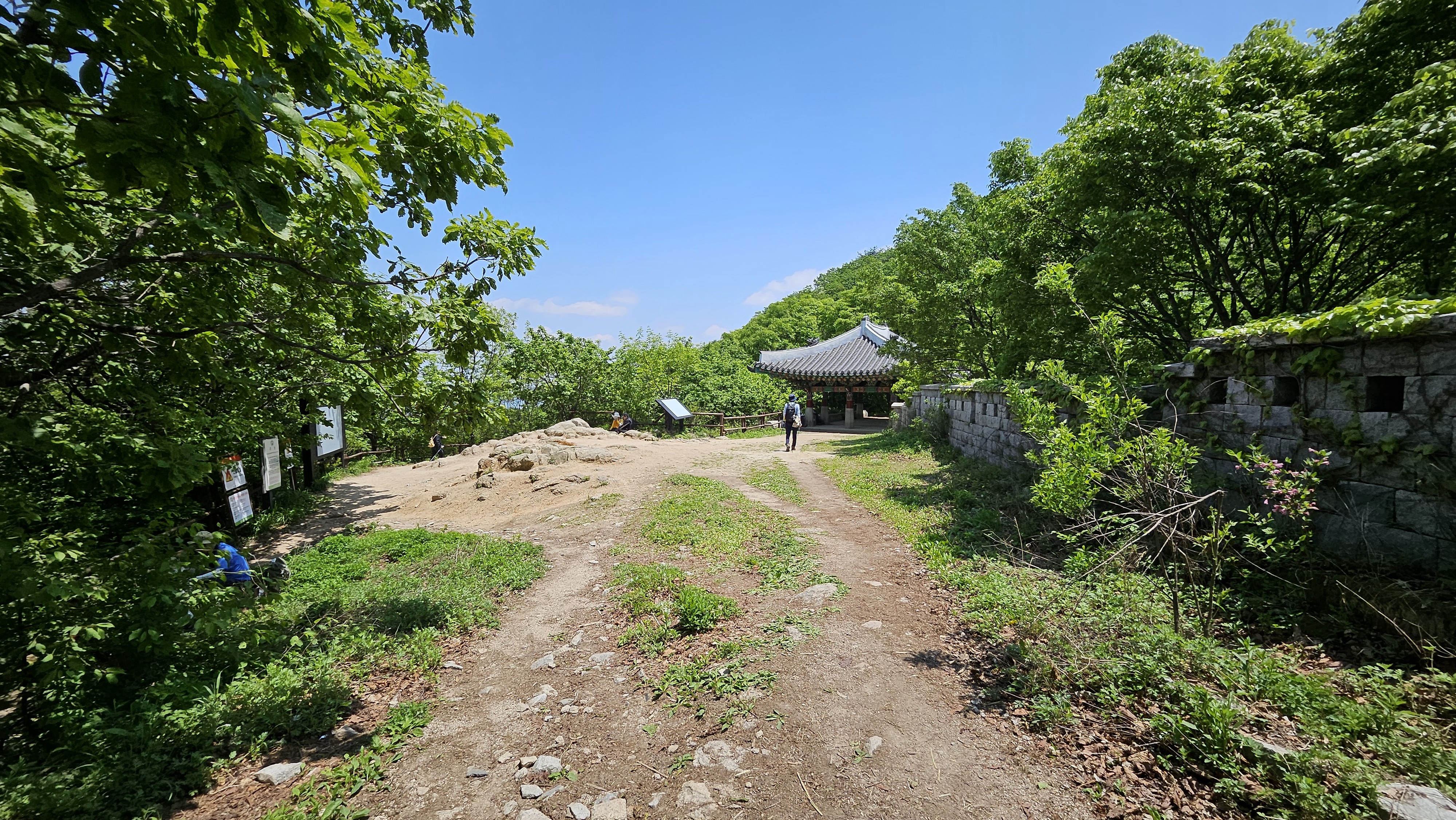 지금 어느 등산객이 왼쪽 길로 올라가고 있다.