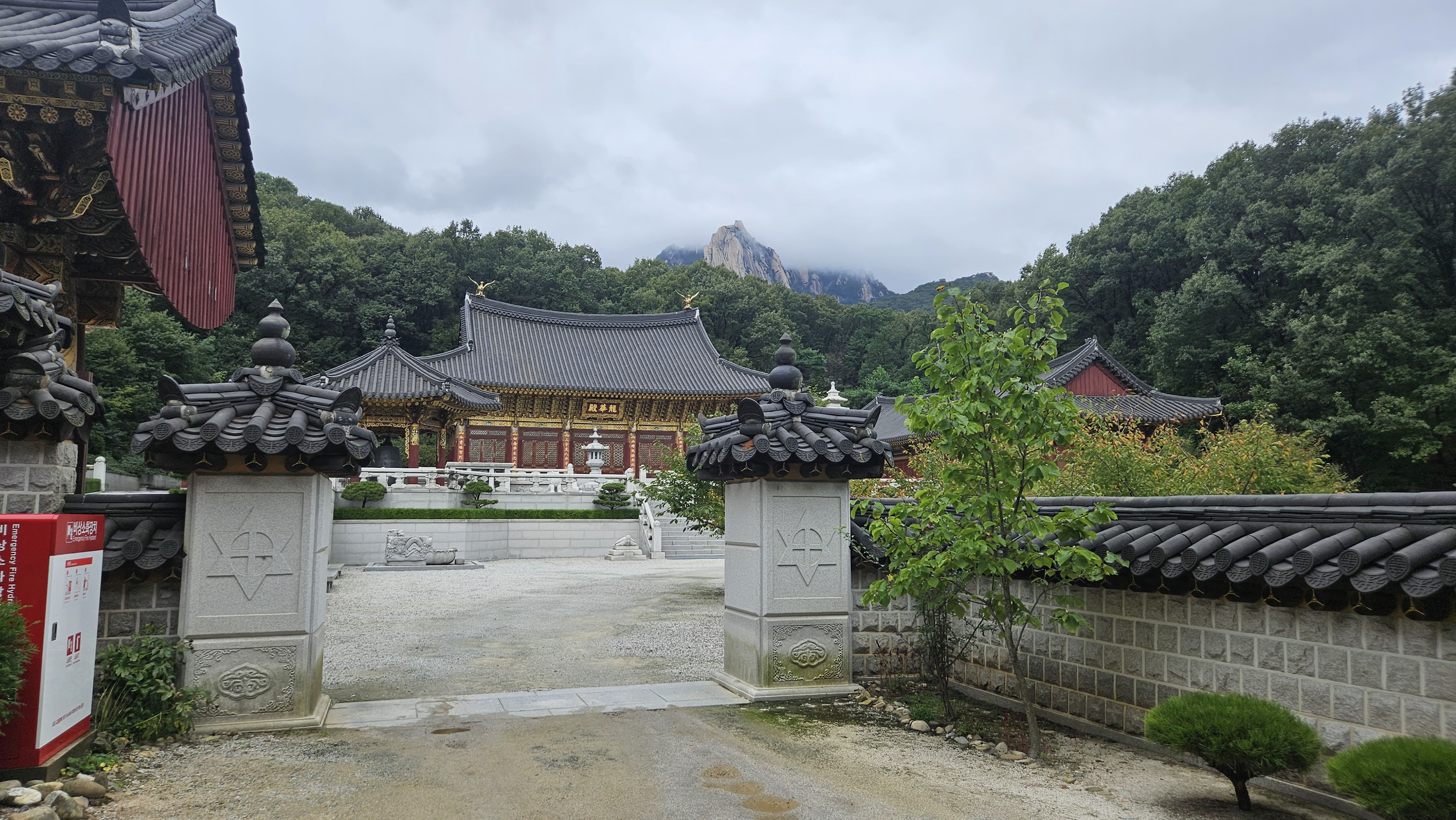 능원사의 대웅전과 도봉산 선인봉을 함께 본다.
