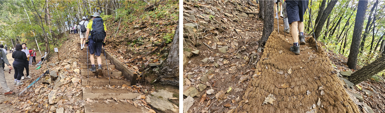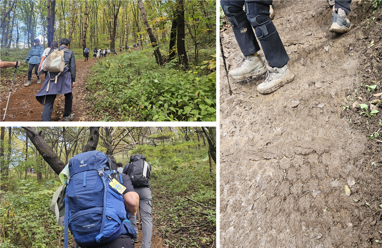 미끌어지면 대책이 없는 길이 계속된다. 미끌어지지 않으려 다리에 힘을 더 주게 된다. 체력소모도 그만큼 크다.