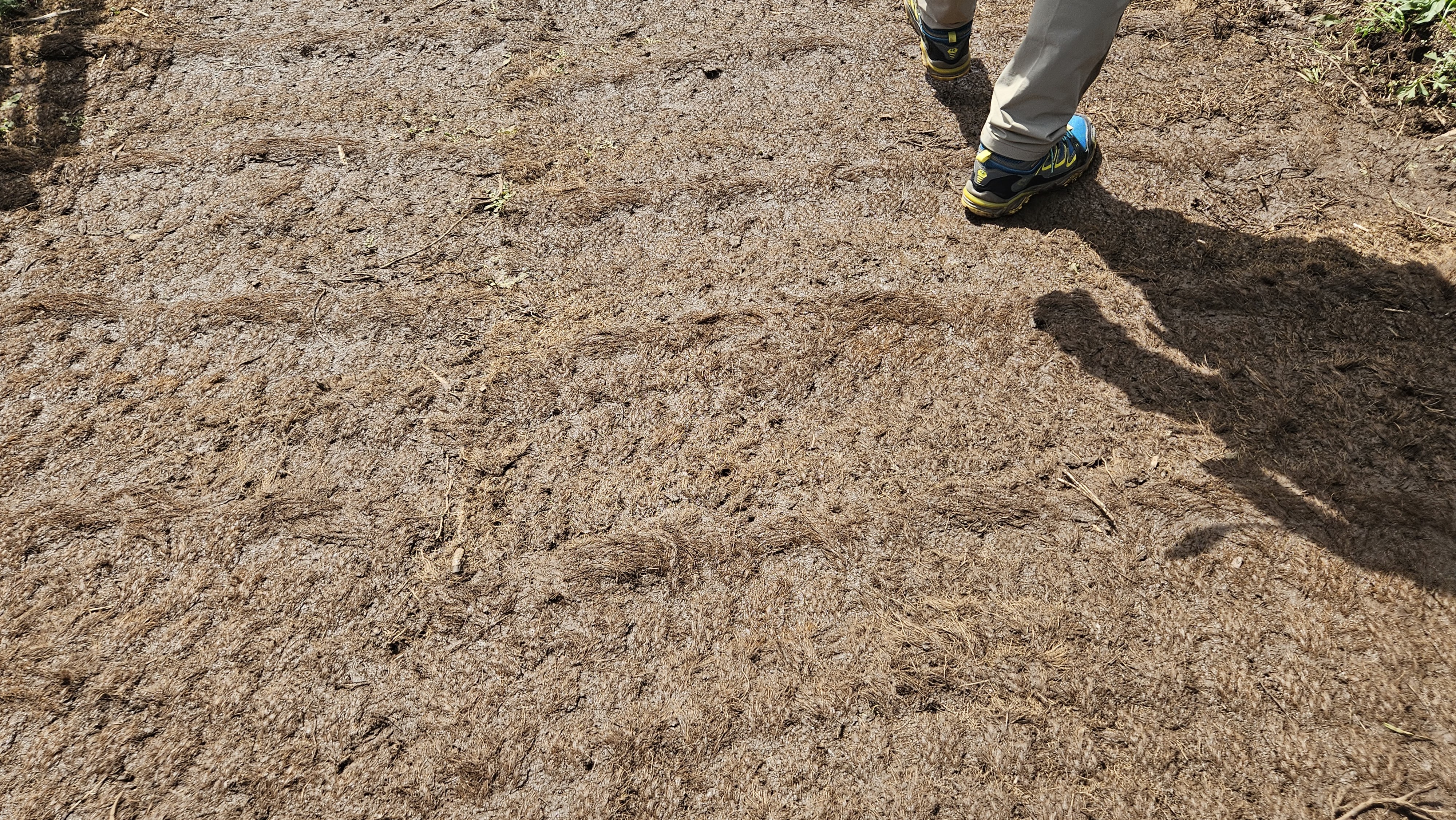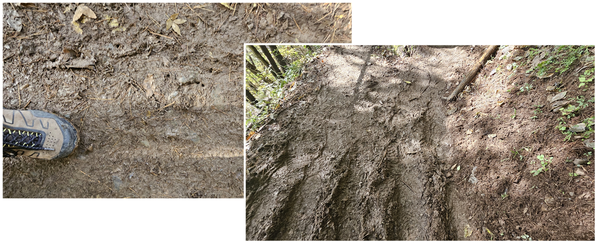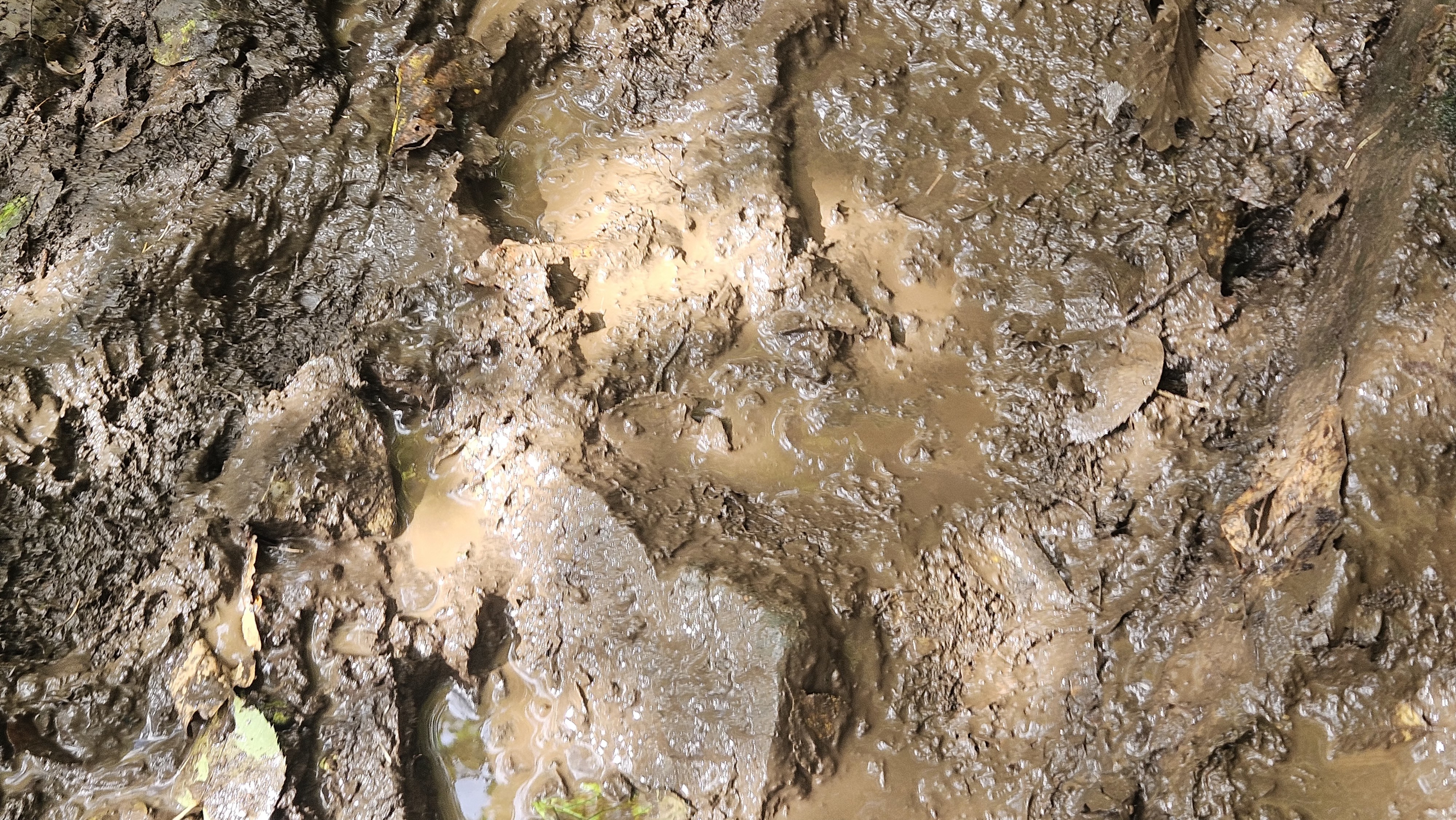 나나영초가 밟아 봤다. 미끄러운 것이 심하다. 발바닥에 붙어있는 흙이 일부 떨어진다.