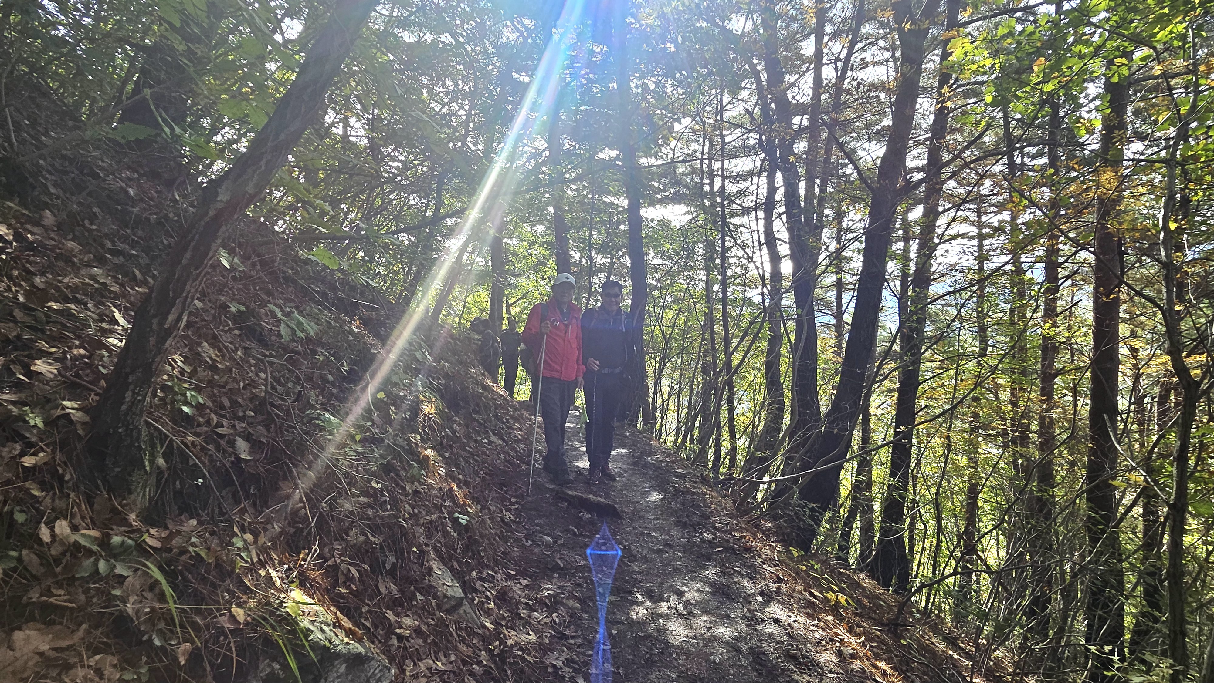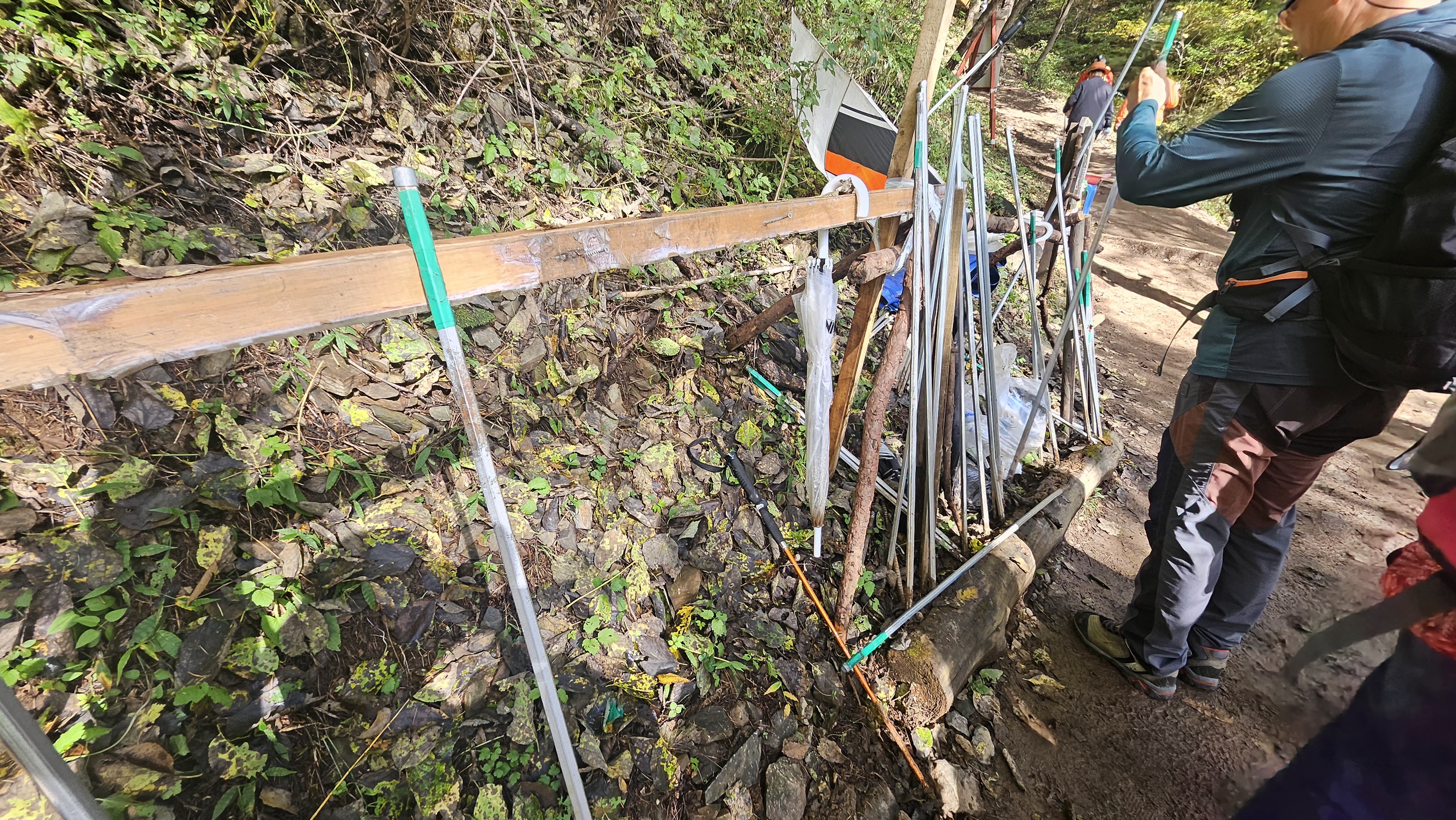 스님이 앉아서 오를 때 지팡이를 가져가라 한다. 나나영초는 민둥산이 짧은 코스라 폴이 필요없다고 판단하여 가져오지 않았다. 하산해 오는 등산객들을 보니 등산화에 진흙이 잔뜩 묻어 있다. 어떤 사람은 바지에 진흙이 묻어있기도 했다. 참 고마운 스님이다.