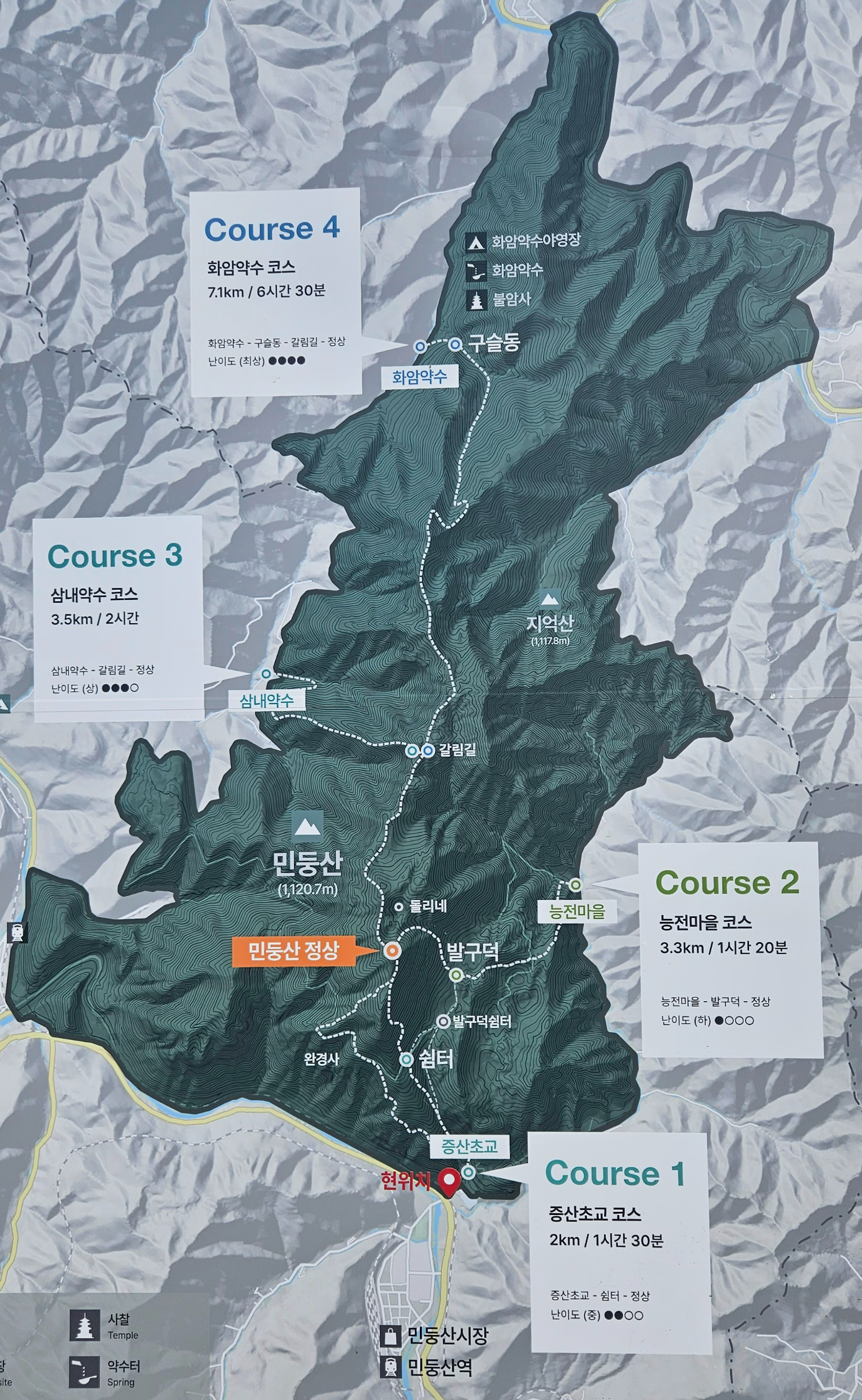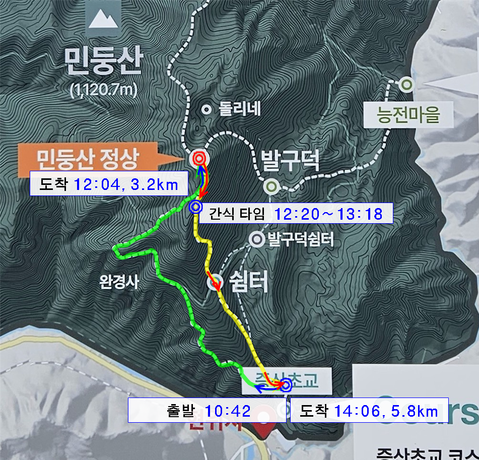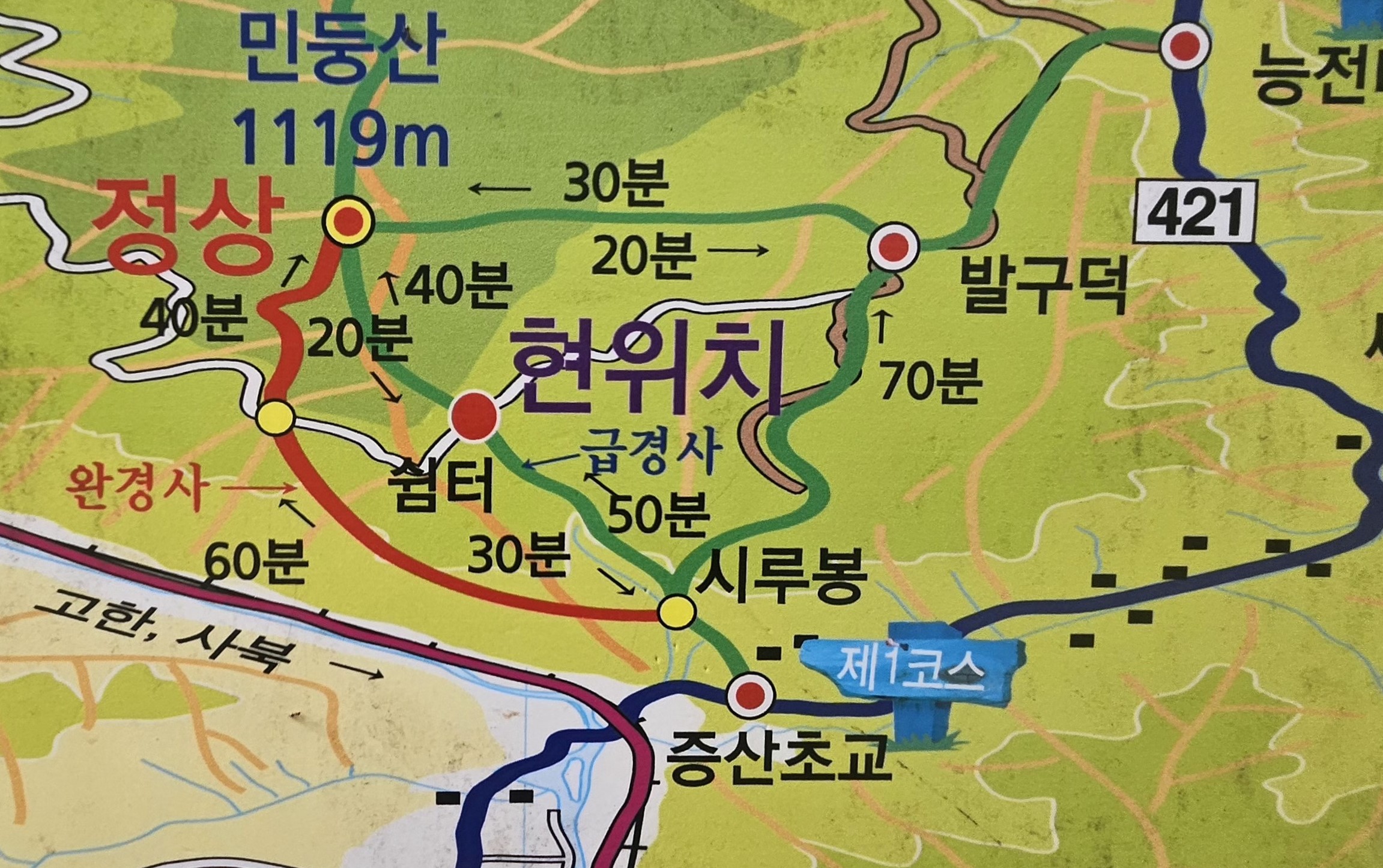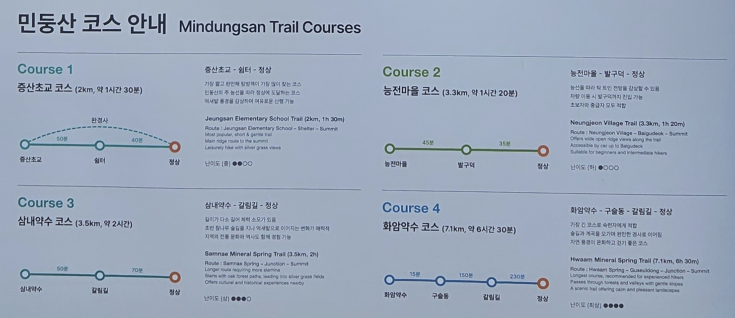 입구 게시판에 있는 민둥산에 대한 내용이다. 게시판과 나나영초가 확인한 거리가 달라 이것 저것 찾아 보았다. 글이 잘아서 잘 안보이면 확대를 강하게 추천한다.