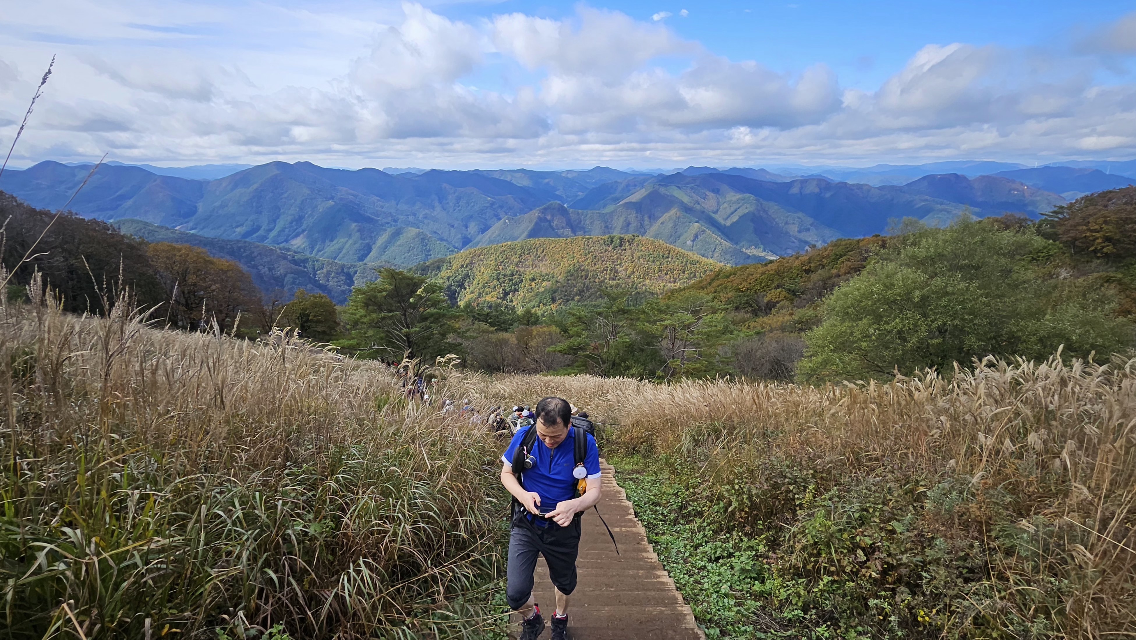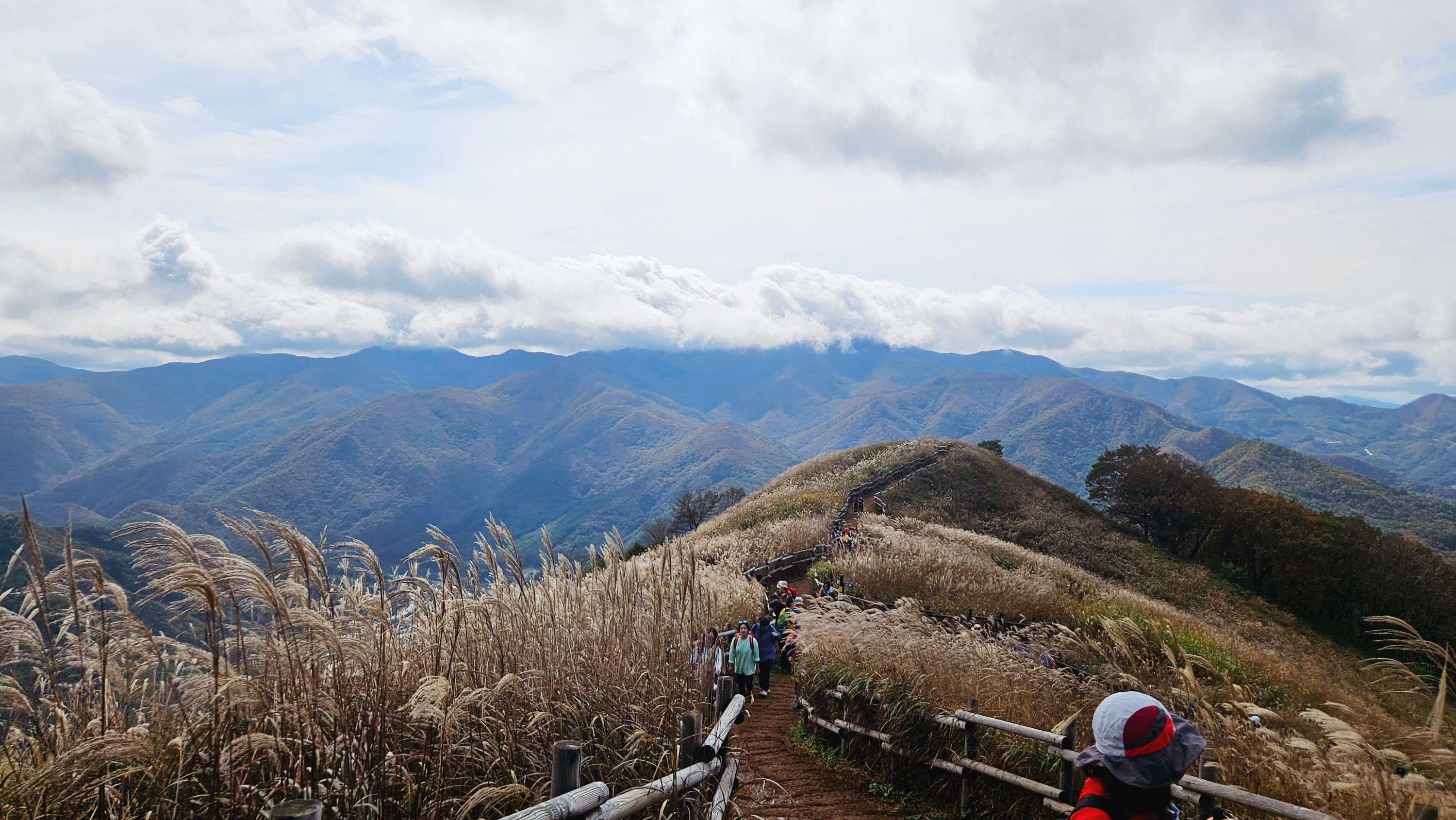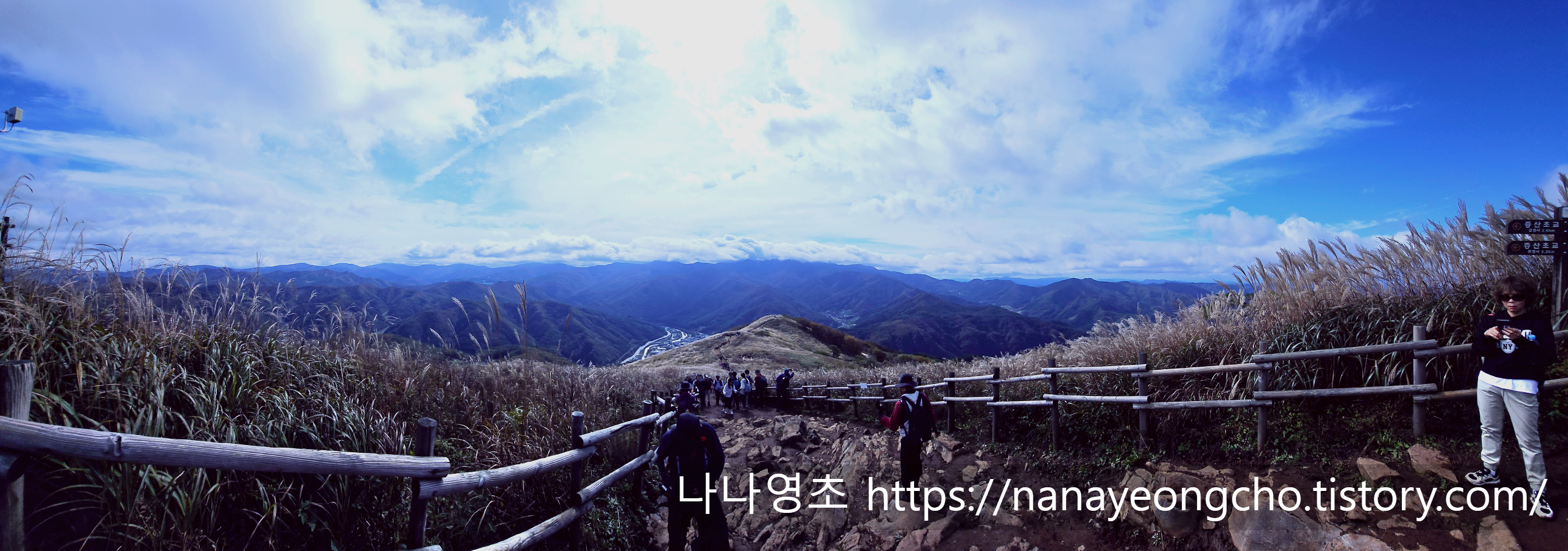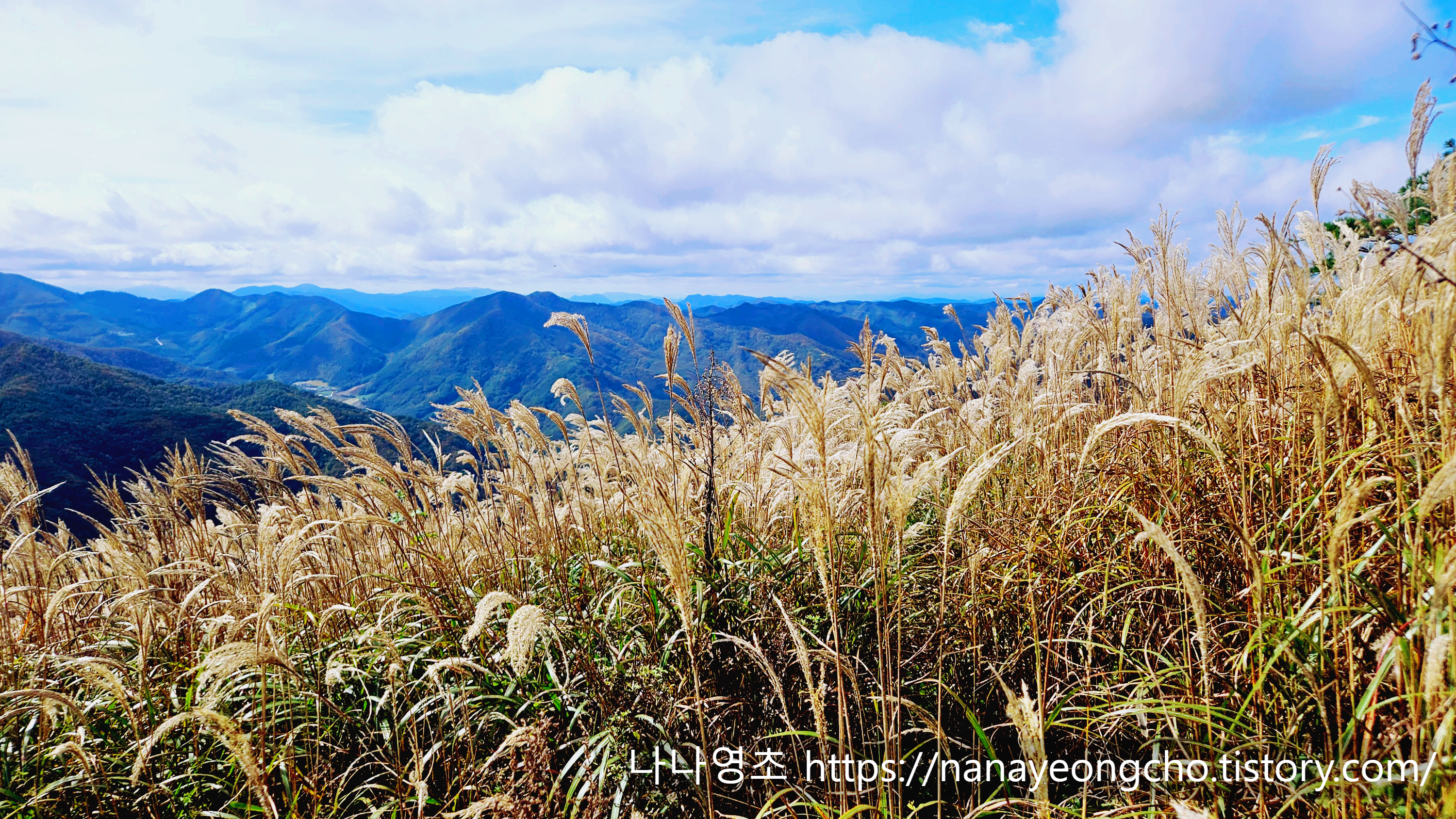 억새가 생각보다 멋지진 않았지만 그래도 주변 산하와 달리 억새가 있는 정상부분은 아름답다.