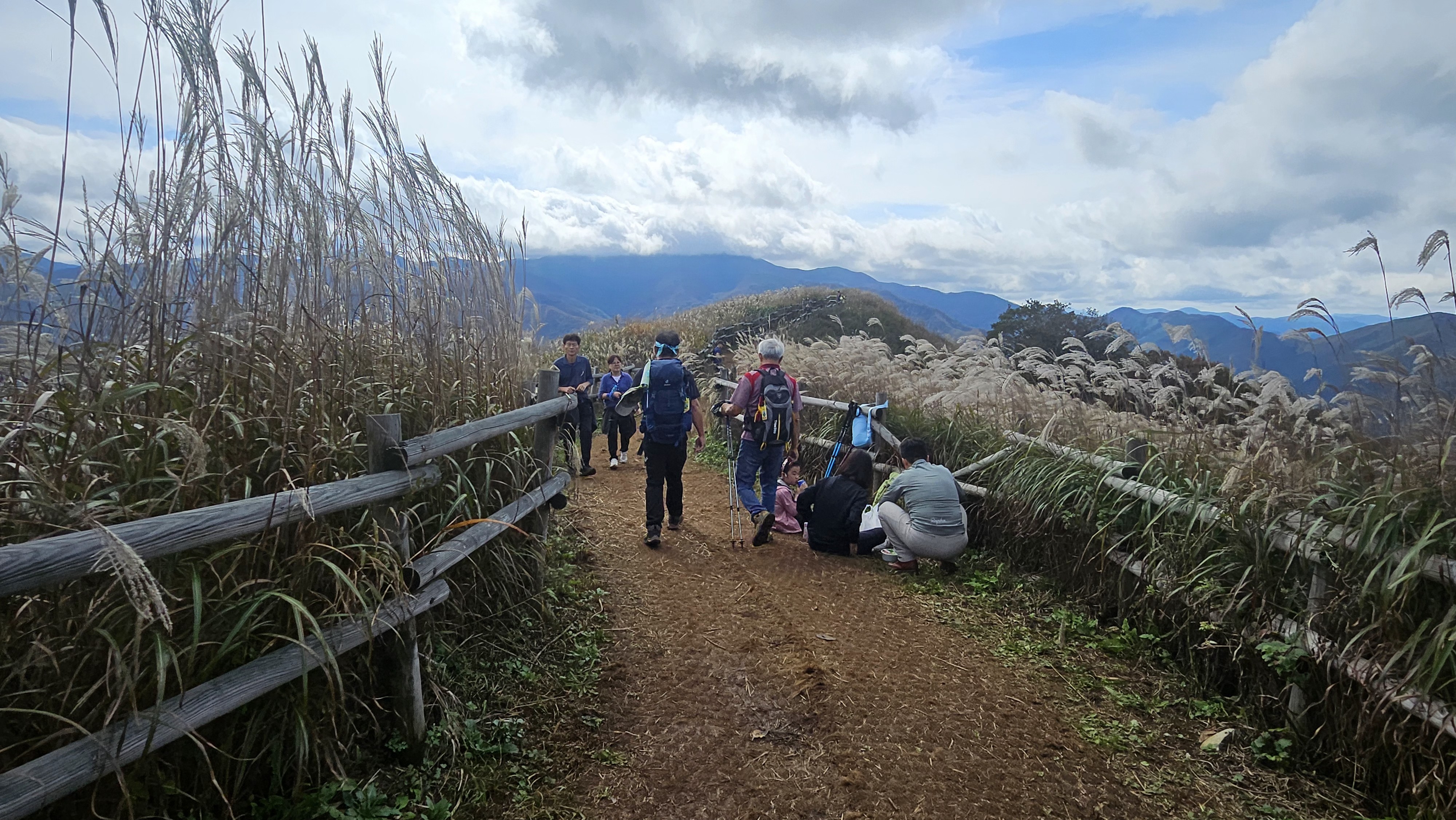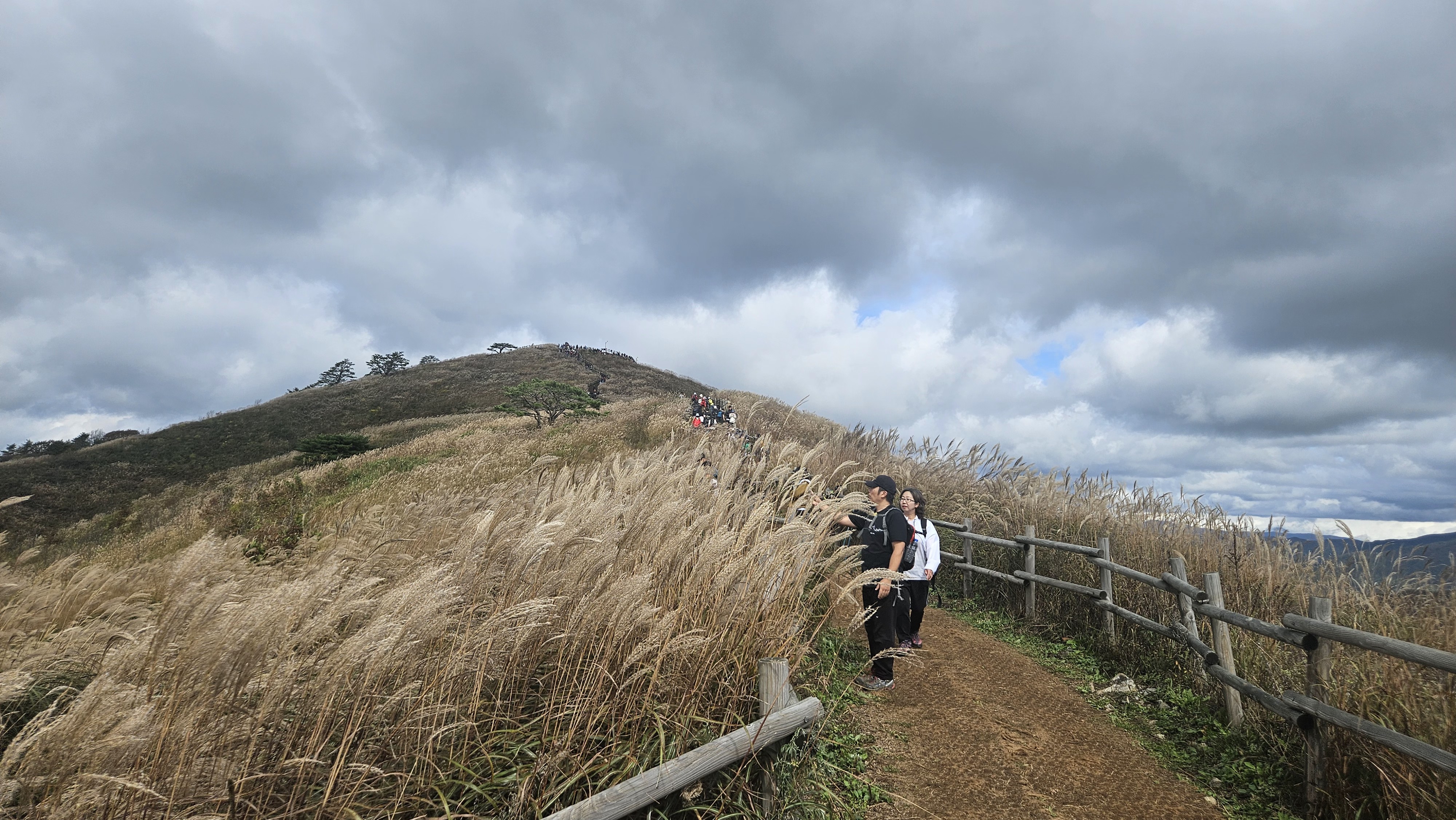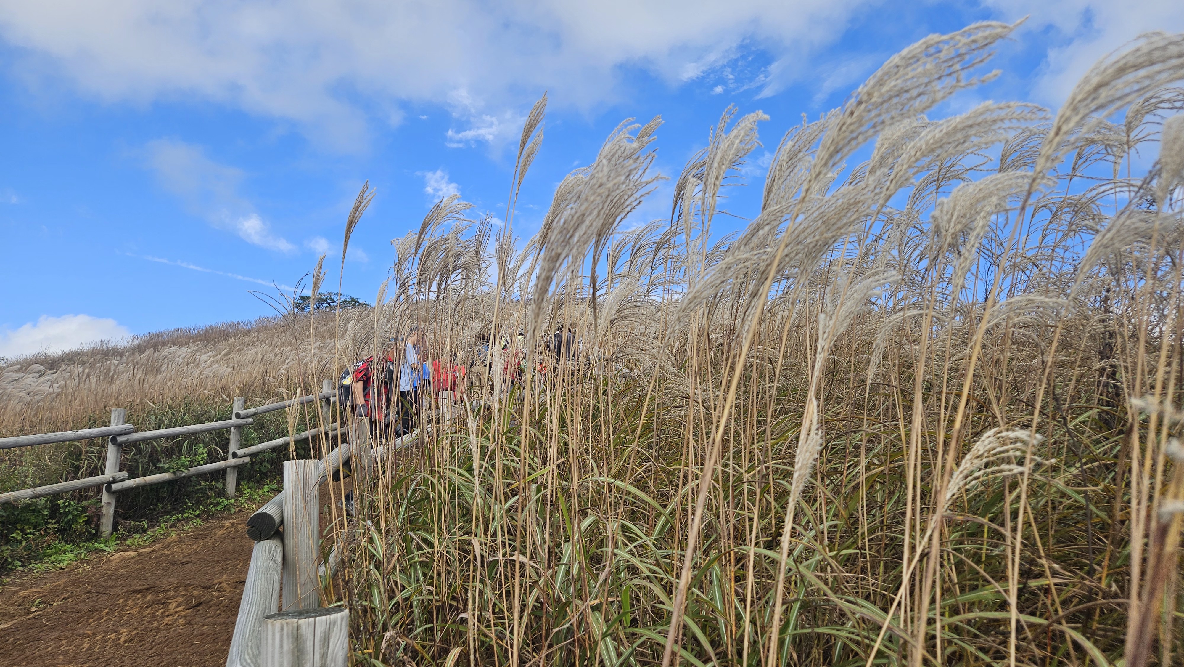 정상에서 내려가는 길, 억새를 가까이에서 바라봤다.