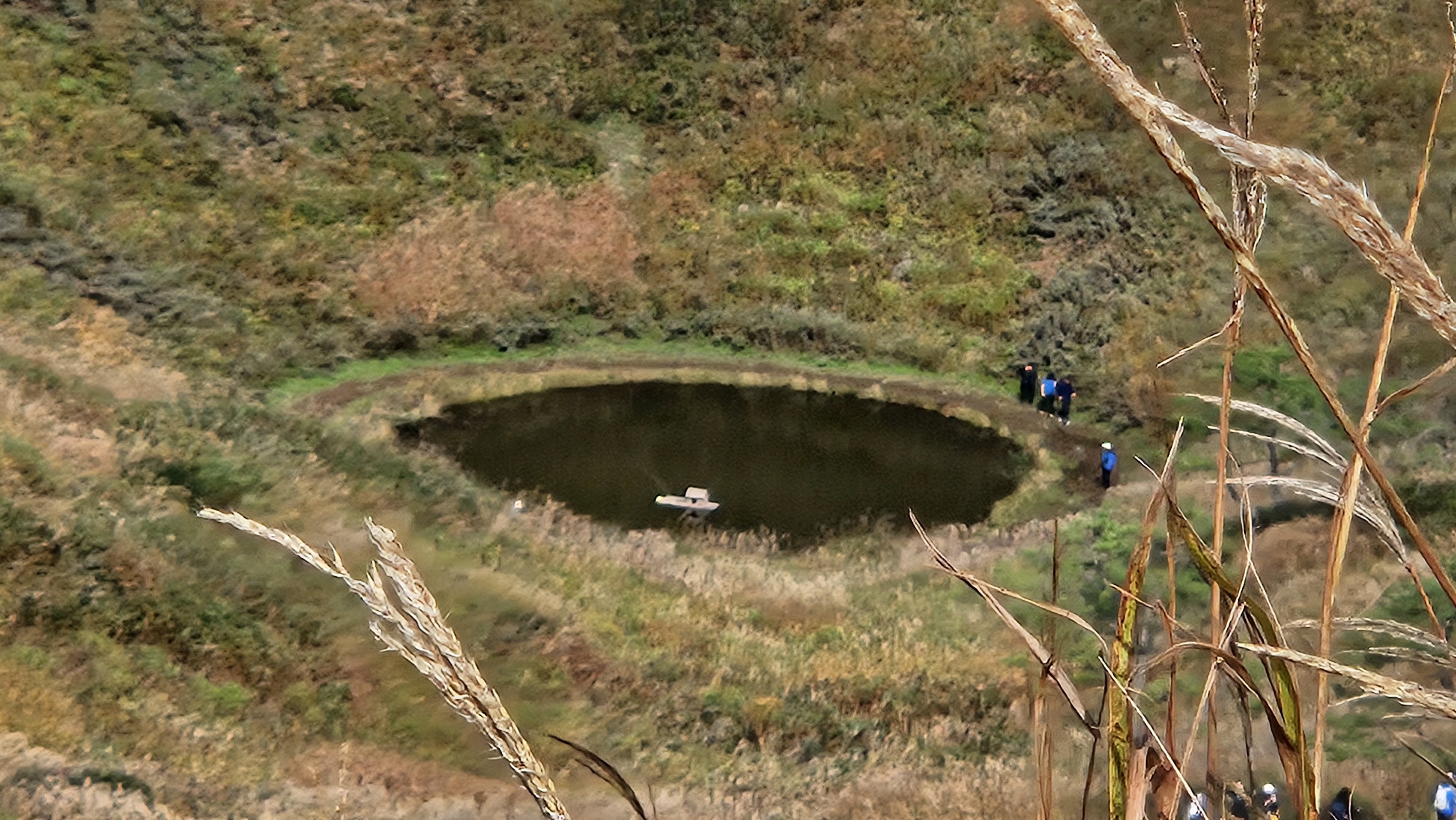 돌리네를 멀리서 잡아본다. 실제 민둥산에서 돌리네까지는 내려가야 한다. 올라오기 싫으면 내려가지 말 것을 추천한다.