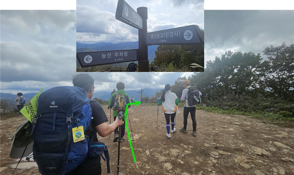 정상능선 삼거리다. 등산할 때 오르던 곳으로 가지 않고 당초 계획대로 2코스 방향으로 간다.