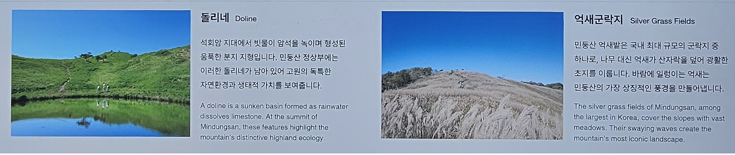 민둥산의 돌리네다. 한라산 백록담은 화산활동 결과이나 민둥산은 아니라고 한다. 앞서 돌리네에 대해 안내했다. 귀찮더라도 잊었으면 찾아보는 것도 좋을 것 같다.