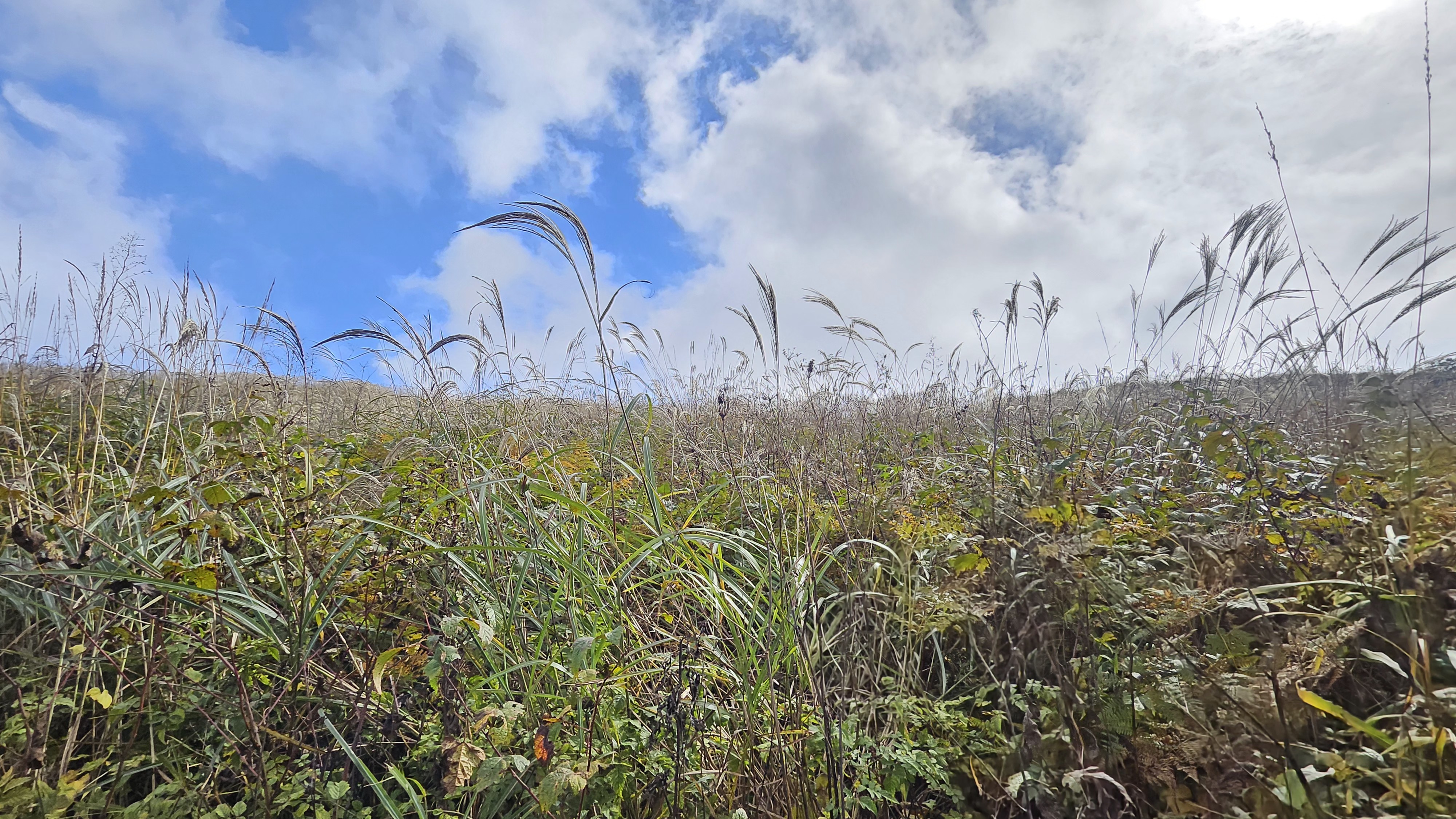 민둥산을 올라가며 올라온 민둥산 아래부분과 멀리있는 산과 구름을 잡았다. 사진에 힘 좀 줬다.