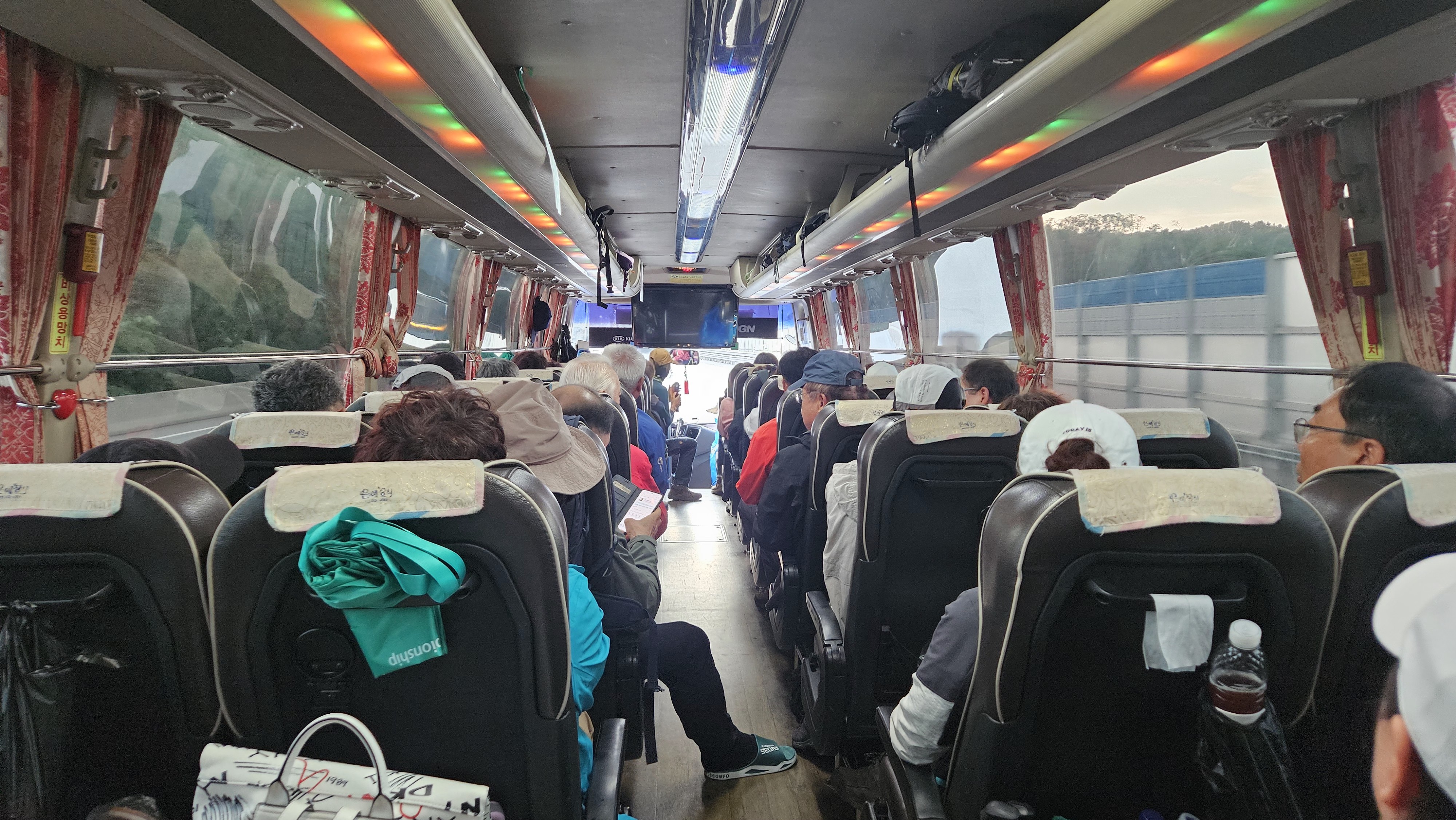 특별한 산악회에서 마련한 관광버스에 운전기사 포함 45명이 타고 간다. 동네 산악회 인데도 인기가 많아 매번 이렇게 꽉찬다.