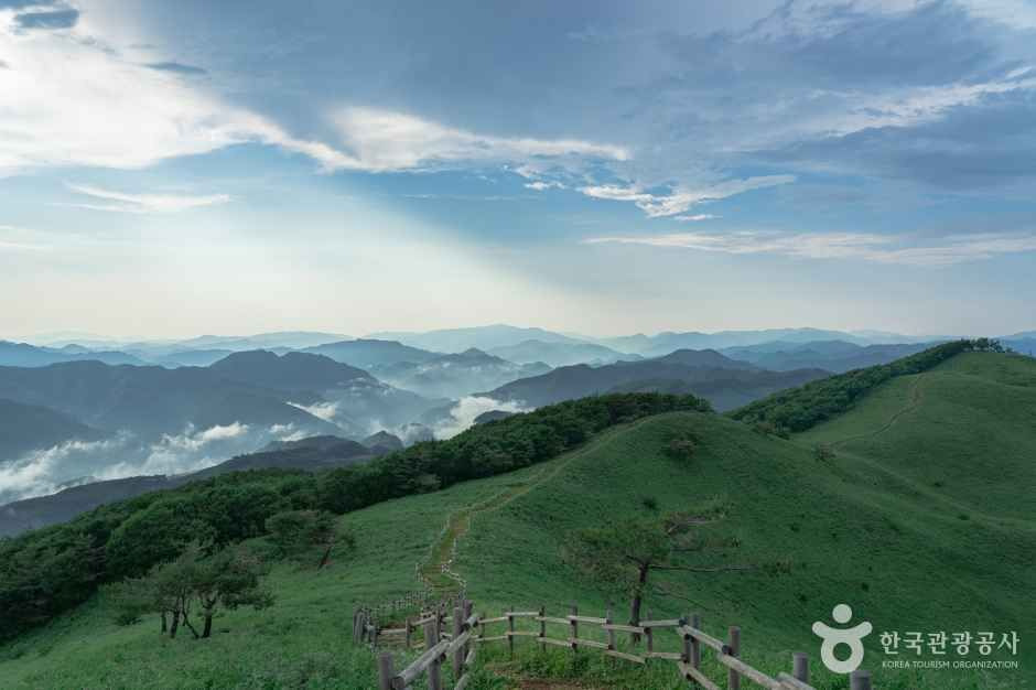 위치 : 강원특별자치도 정선군 남면 무릉리![]() 가을 억새 산행지이자 철도 산행지의 대표적인 산이 정선 민둥산이다. 민둥산은 해발 1,118.8m로 억새산이라고 할 만큼 온통 억새로 뒤덮여 있다. 산 7부 능선까지는 관목과 잡목이 우거져 울창한 숲이 이어지지만, 정상 부분은 산의 이름처럼 나무가 거의 없다.