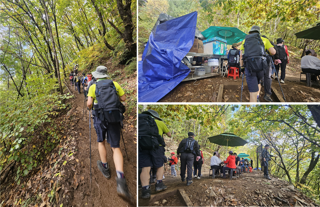 나나영초는 하산하는데 오르는 등산객들... 이쯤에서 특별한 산악회 총무님을 만났다.