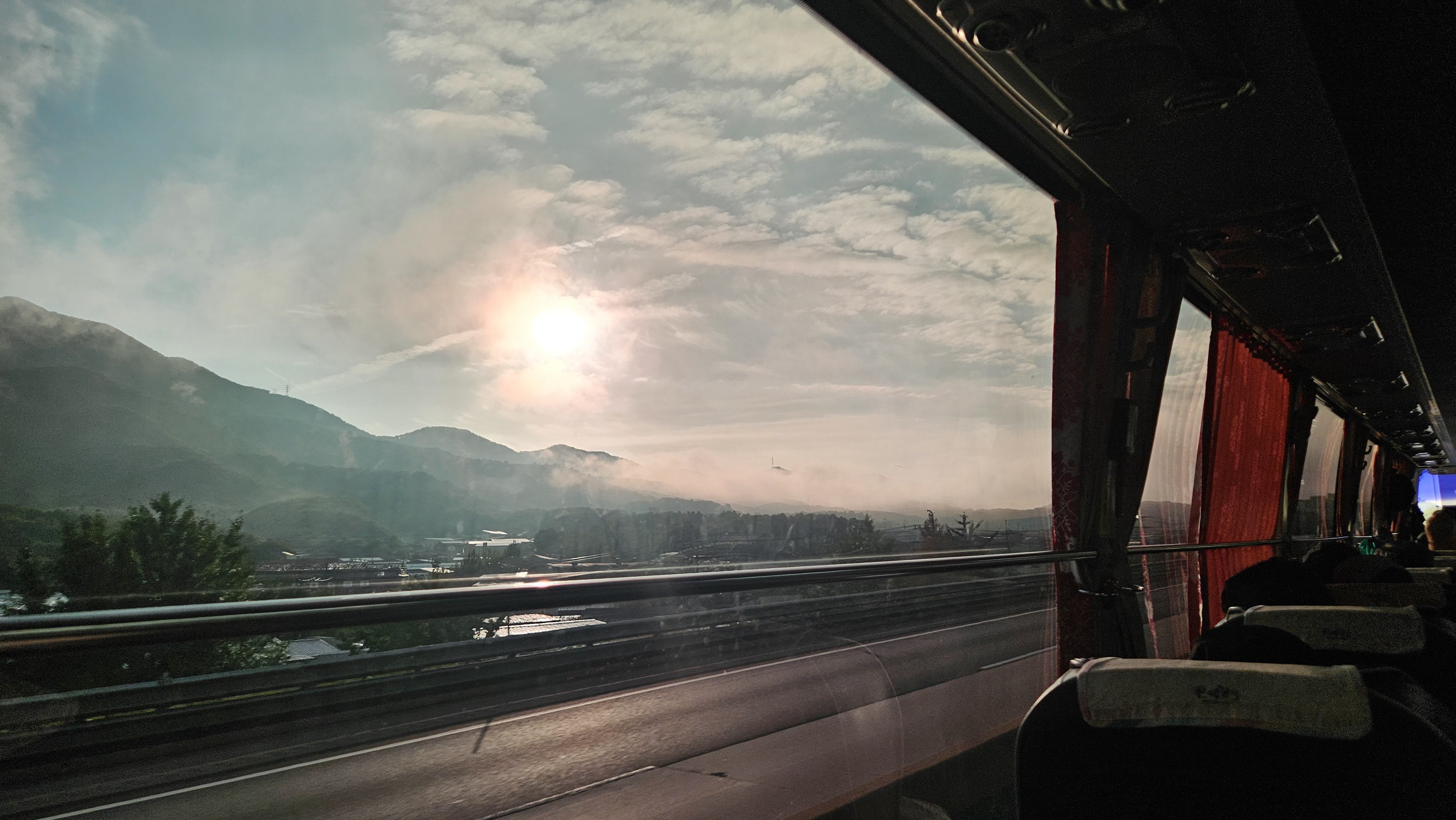 고속도로를 달리는데 운무가 산 아래까지 있어 멋진 시골풍경을 그려낸다.