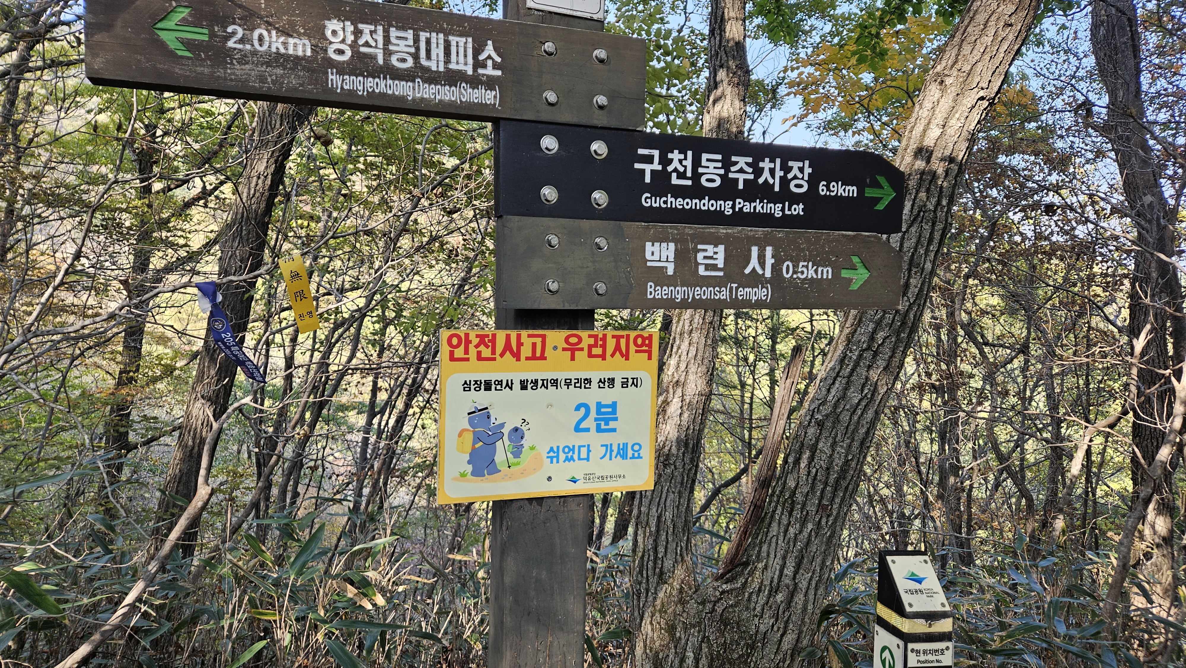 2분 쉬었다 가라는 팻말이 붙어있다. 우리는 숨을 한 번 크게 2분 어치 쉬고 간다.