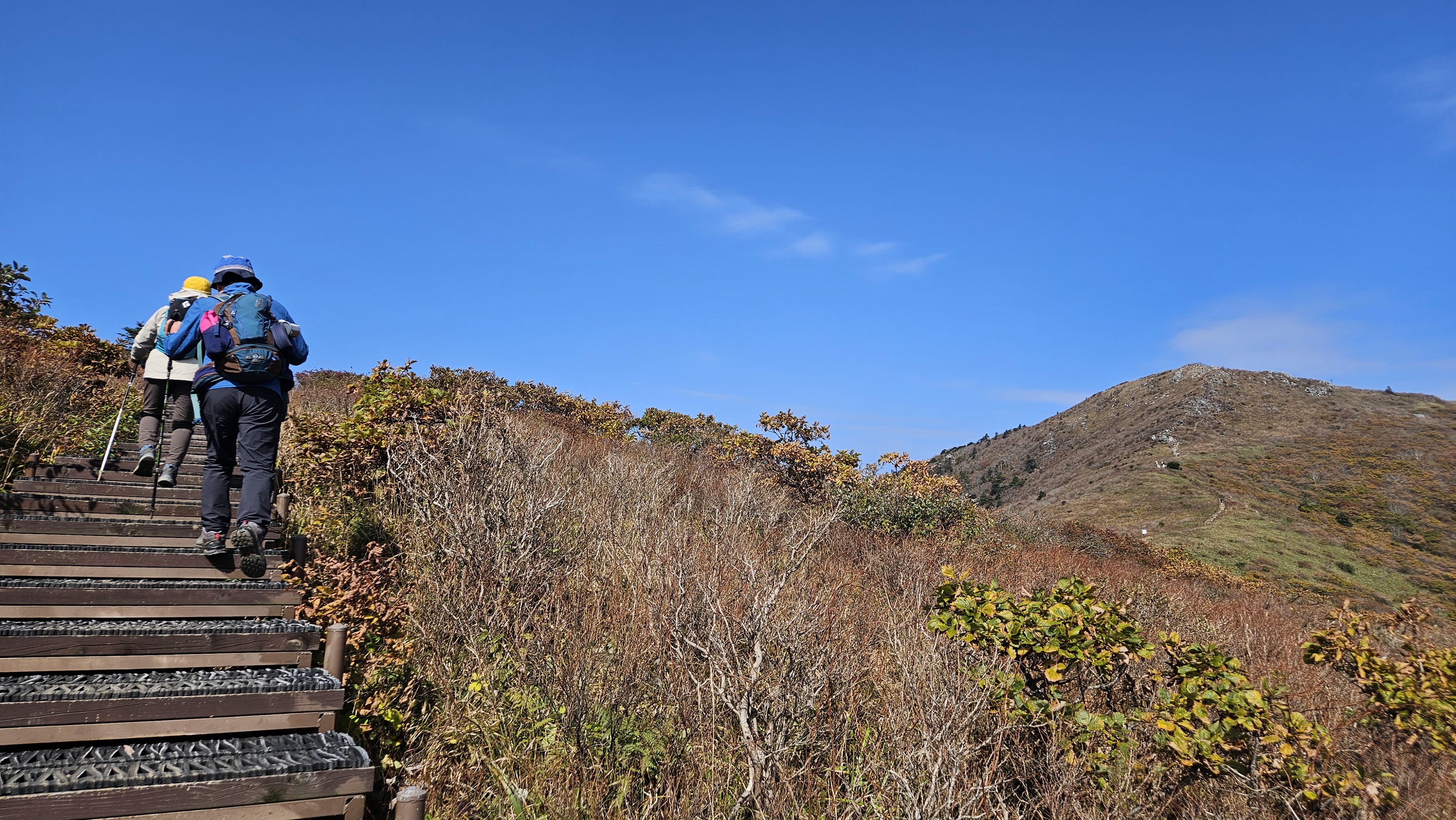 오르는 능선 길이 이리 멋질 수 있나? 이래서 덕유산 능선길을 찾나 보다.