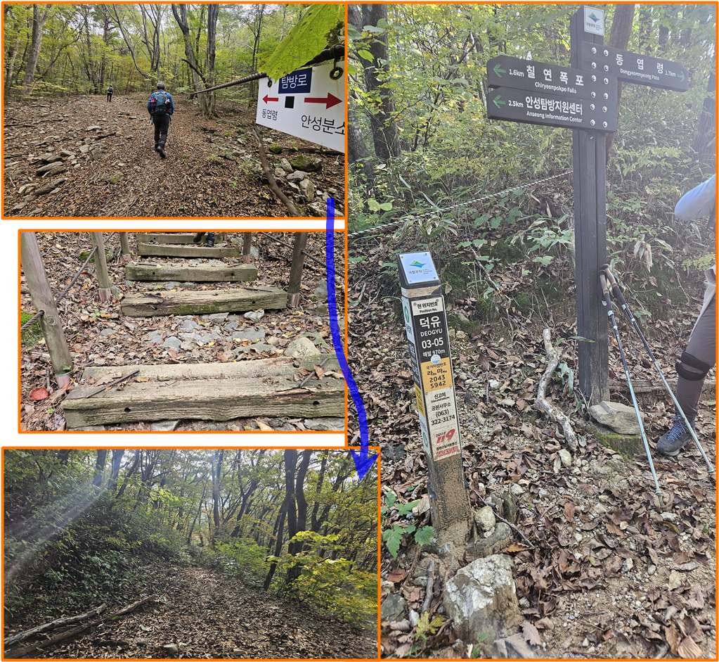 이제 내려서 각자들 출발한다. 대화도 없다. 우리처럼 함께 온 분들만 몇마디 나누며 오를 뿐이다. 여기는 안성탐방로 입구다.