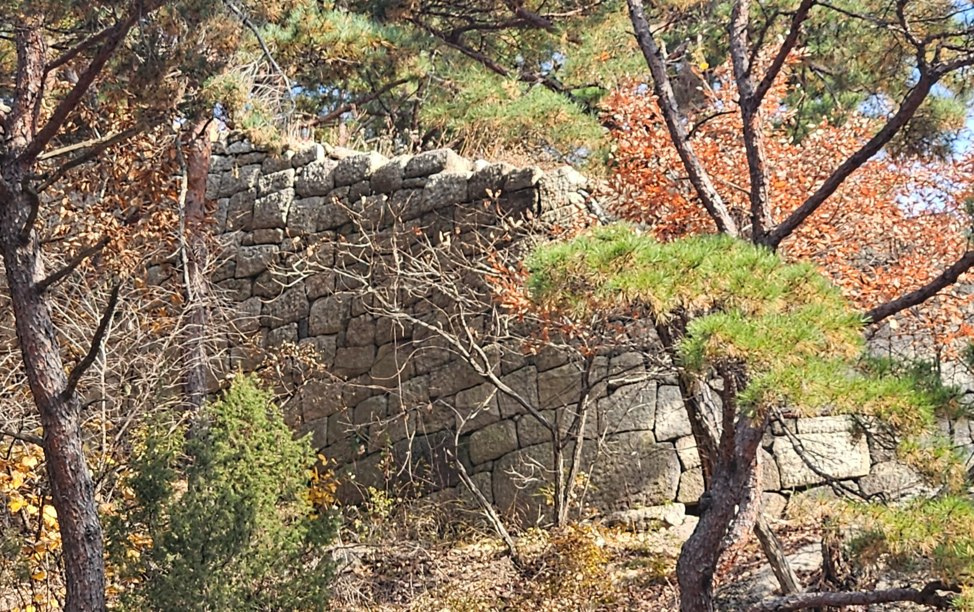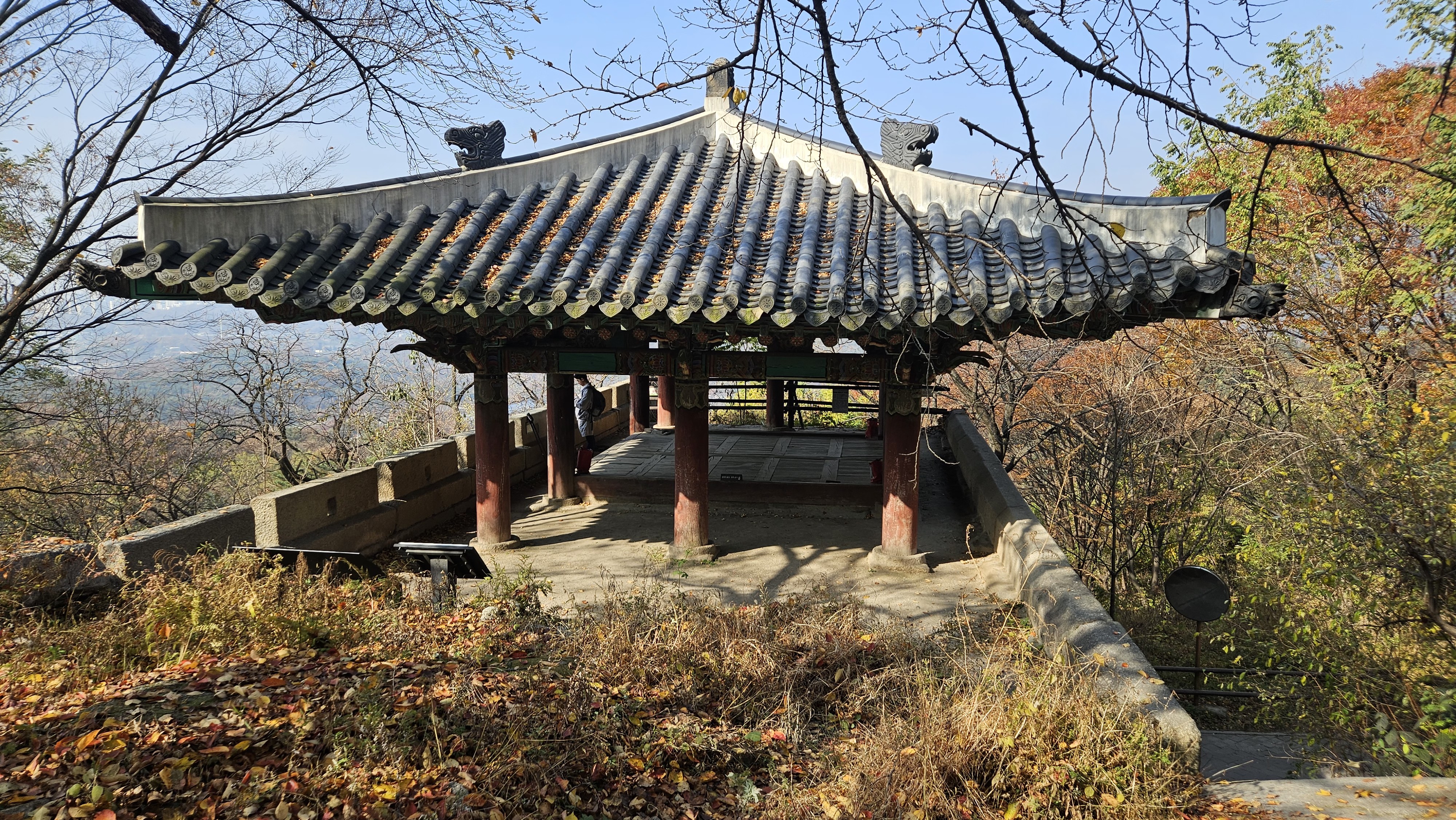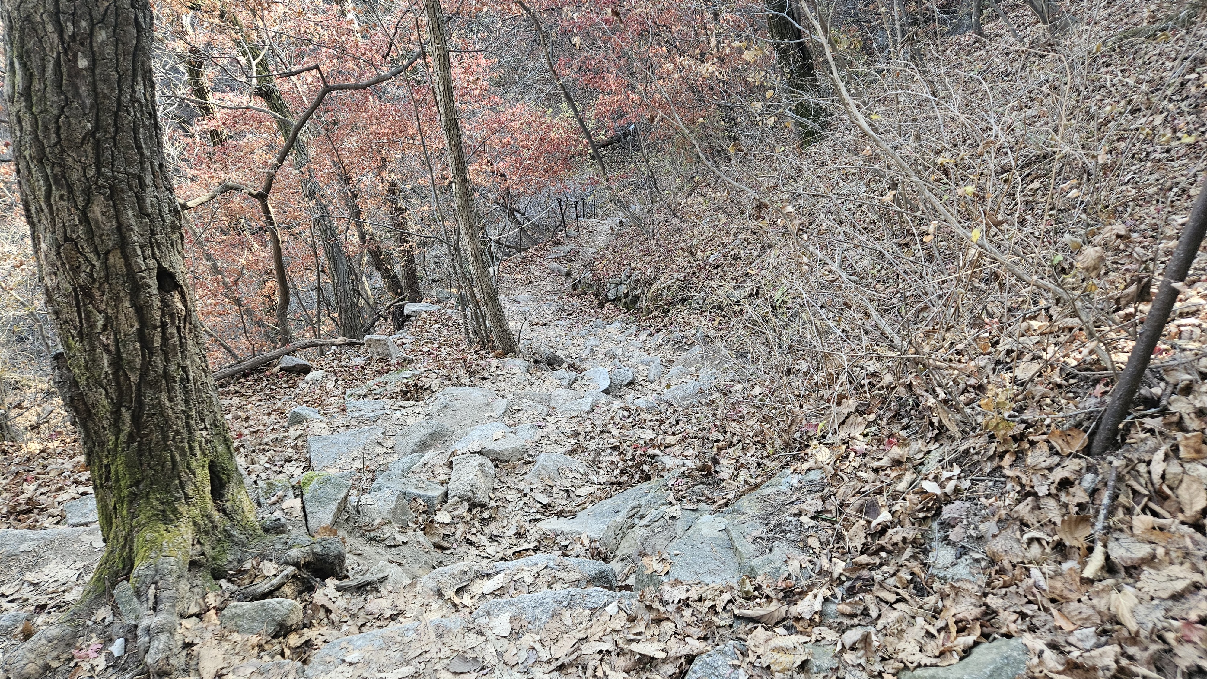 登っていくと枯れている紅葉も見られる。 北漢山避難所を通って