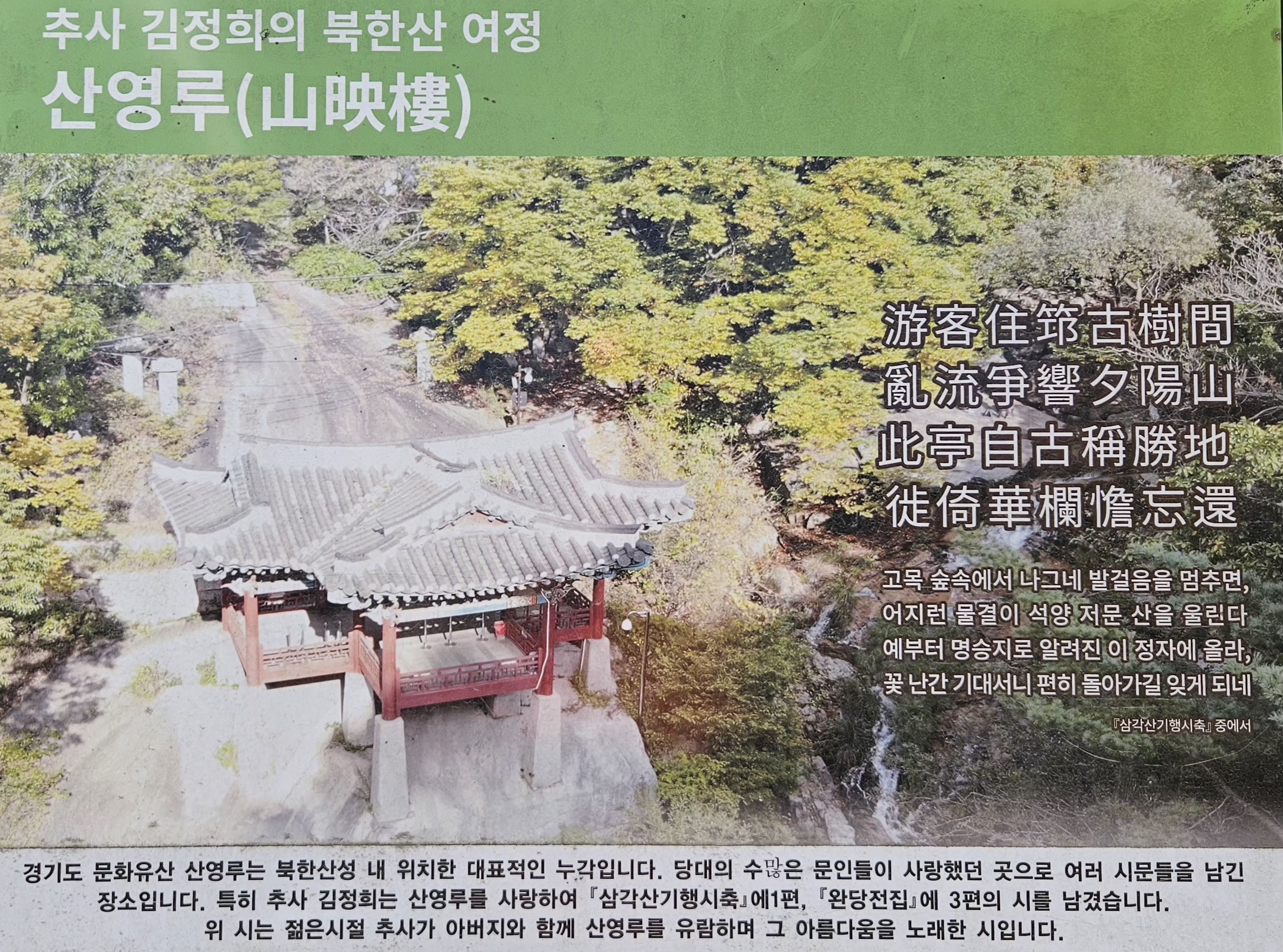 이 곳은 추사 김정희 선생이 자주 찾았던 산영루다.