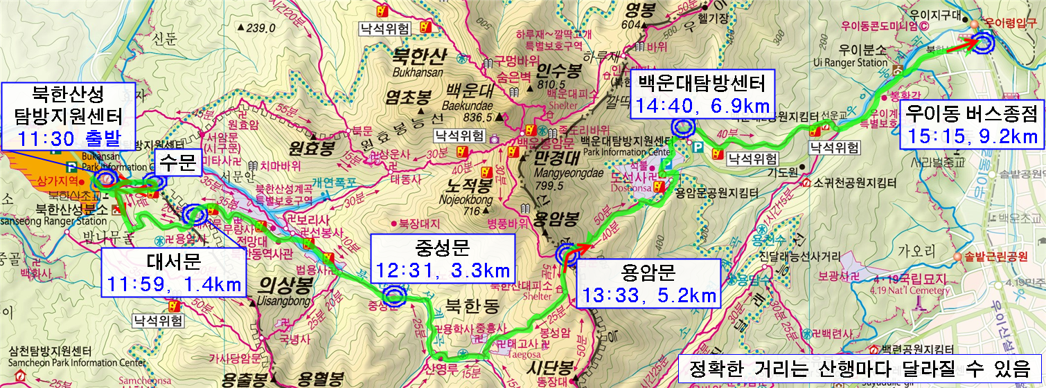 *** 登山コース:北漢山城探訪支援センター - 水門 - 大西門 - 中城門 - 龍暗門 - 道詵寺 - 牛耳洞